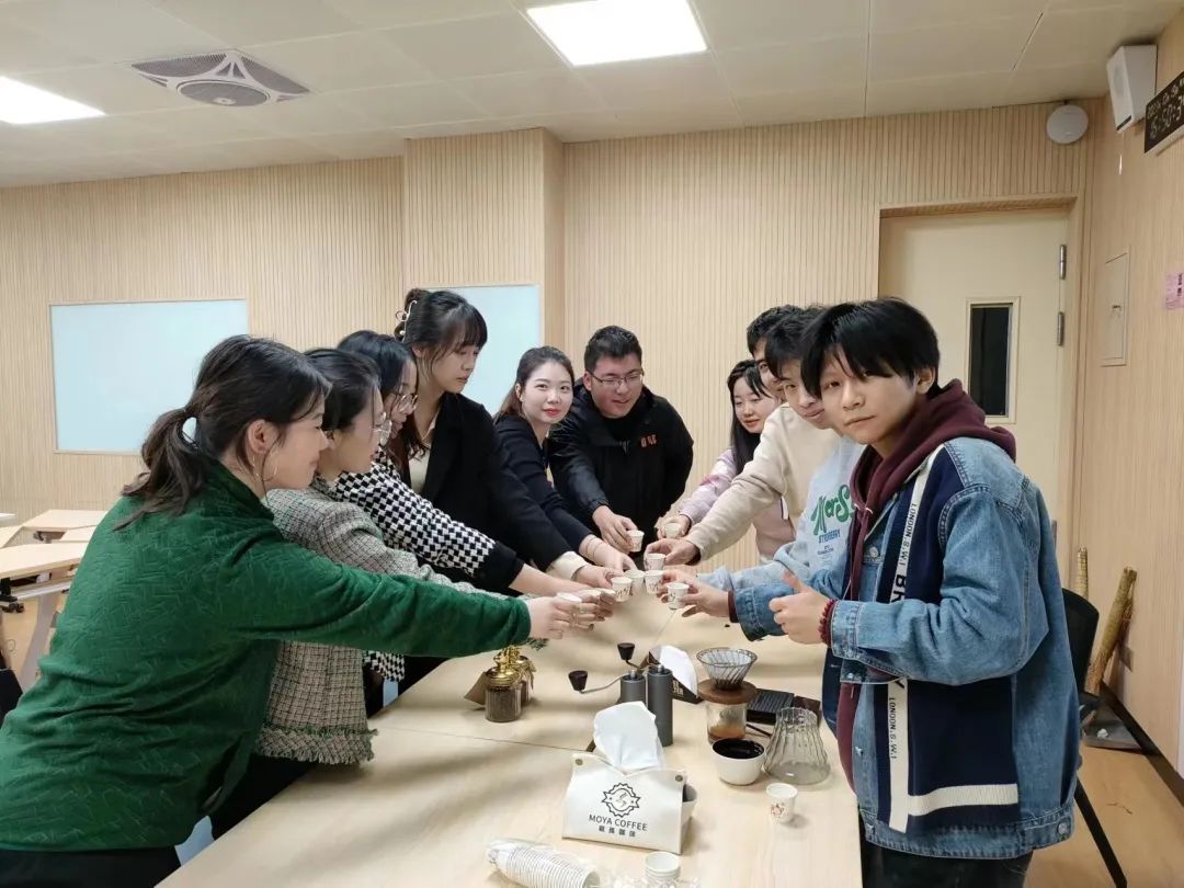 10月25日,社团邀请会计与金融学院老师们参与“忆培华之岁月,品咖啡之醇香”活动。MOYA咖啡社社长黄骋超代表社团向老师们致以衷心的祝福与感谢。大三学术部长杨智钦向辅导员老师们讲解制作咖啡的过程。在咖啡品鉴中,老师们与社团成员沟通交流培华建校95周年的发展史,并提出培华近百年的历史积淀是学校前行的动力与源泉,希望大家勿忘校史,砥砺前行。老师们对咖啡社的未来发展提出殷切期望,并勉励大家要更加努力进步,做培华人,忠培华魂。