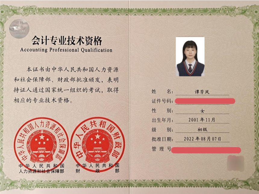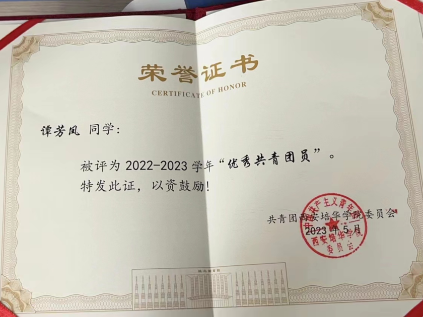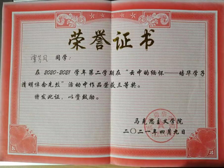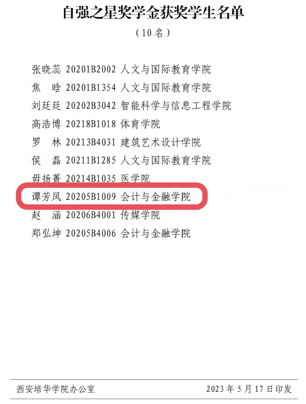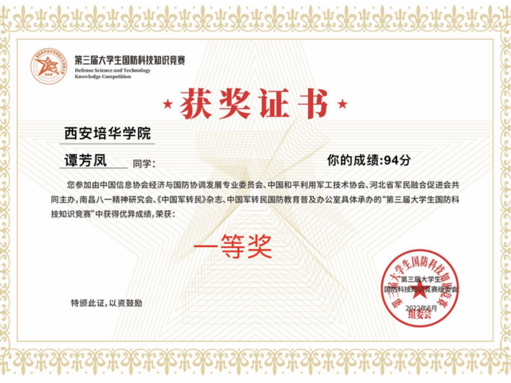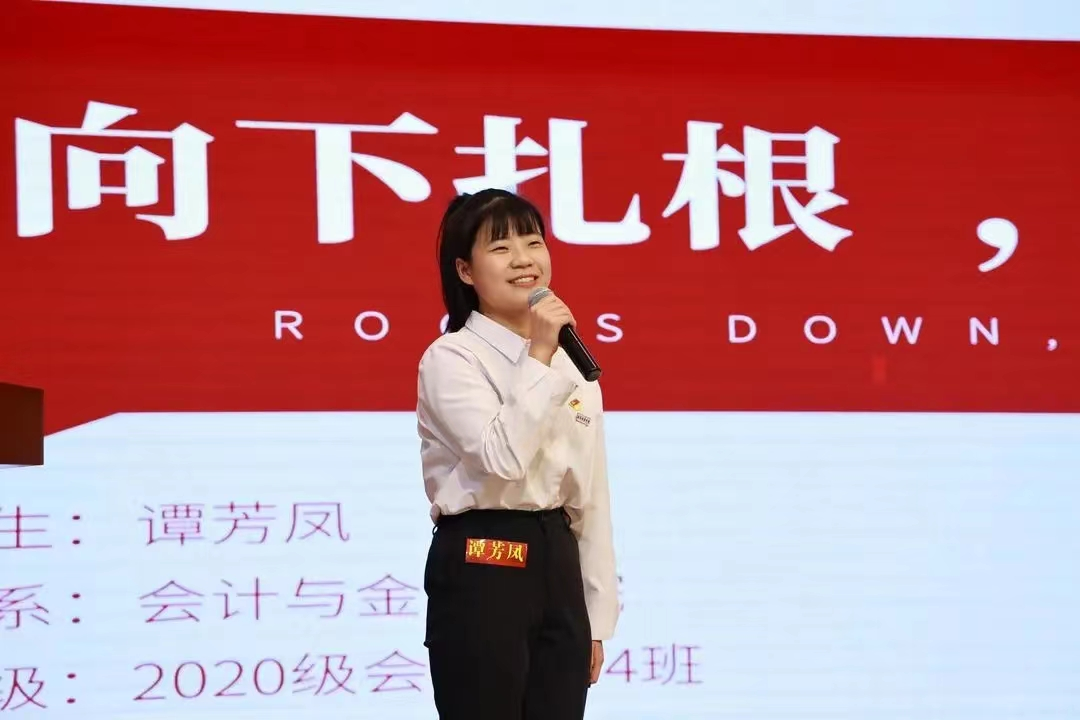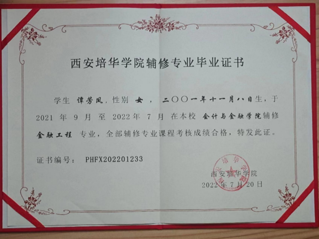 谭芳凤,中共预备党员,2020年9月就读于西安培华学院会计与金融学院会计学专业。在思想方面,拥护中国共产党的领导,坚定自身的政治方向,尊师重道、积极进取、严于律己,努力向党组织靠拢,以党员标准要求自己,获评“优秀共青团员”。在学习方面,始终牢记学习是学生的第一要务,始终保持谦卑的学习态度,勤奋好学,积极向上。大学三年,专业排名始终保持在班级第一,年级前5%,并以均分95+的成绩从金融工程辅修专业毕业;一次性通过英语四六级考试,并取得会计专业技术资格初级证书、计算机二级等级证书和普通话水平测试二级甲等证书;连续两次获得国家励志奖学金,此外,还获得了外语奖学金,并被评为“自强之星”和“三好学生”。在竞赛方面,踊跃报名各类比赛,其中带领小组成员参与“一带一路暨金砖国家技能发展与技术创新大赛”,获得全国三等奖;参与“新道数智人才杯”沙盘大赛,获得陕西省赛三等奖;参加“互联网+”等创新大赛获得院校级奖项等。在实践方面,主动参加班级、组织和第二课堂活动,以及校内外各种志愿活动,为社会贡献自己的一份力量。在疫情期间积极协助学校疫情防控工作,并多次获得志愿服务证书。