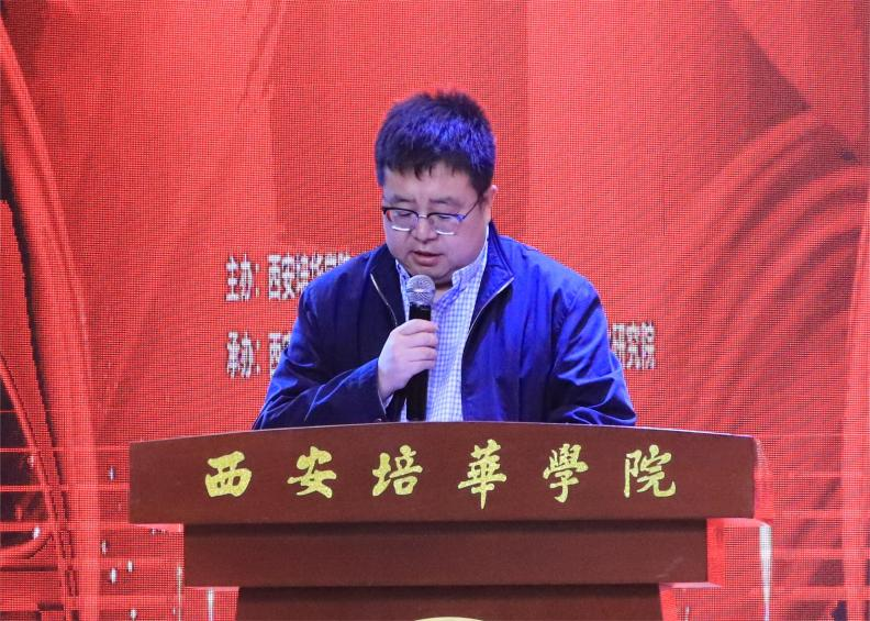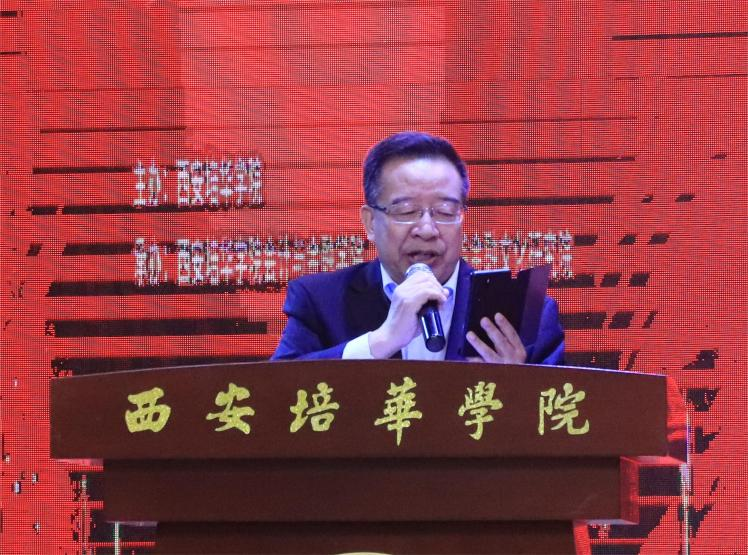 西安培华学院金融文化研究院院长赵晓舟宣读“金融文化成果奖”获奖名单