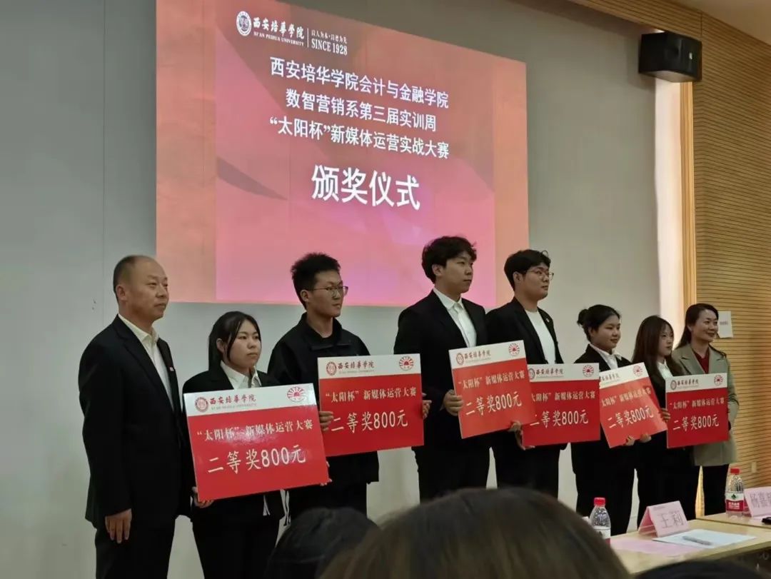 西安培华学院会计与金融学院数智营销系于2023年10月27日周五下午14:00在博远楼J202举办第三届实训周“太阳杯”新媒体运营实战大赛决赛,该活动旨在推动学生在新媒体领域的创新和发展。本次比赛由市场营销专业的王静芝和庞嘉洋同学共同主持。主要参会人员有西安太阳食品有限责任公司董事、行政总监王磊峰,西安太阳食品有限责任公司电商部门相关负责人、西安培华学院会计与金融学院院长赵选民,行政副院长史立军以及副院长丁阳,数智营销系电子商务、市场营销专业全体教师和学生。此次比赛为数智营销系的学生们提供了一个展示他们数字营销技能的舞台,共同见证了这一数字时代的营销盛事。