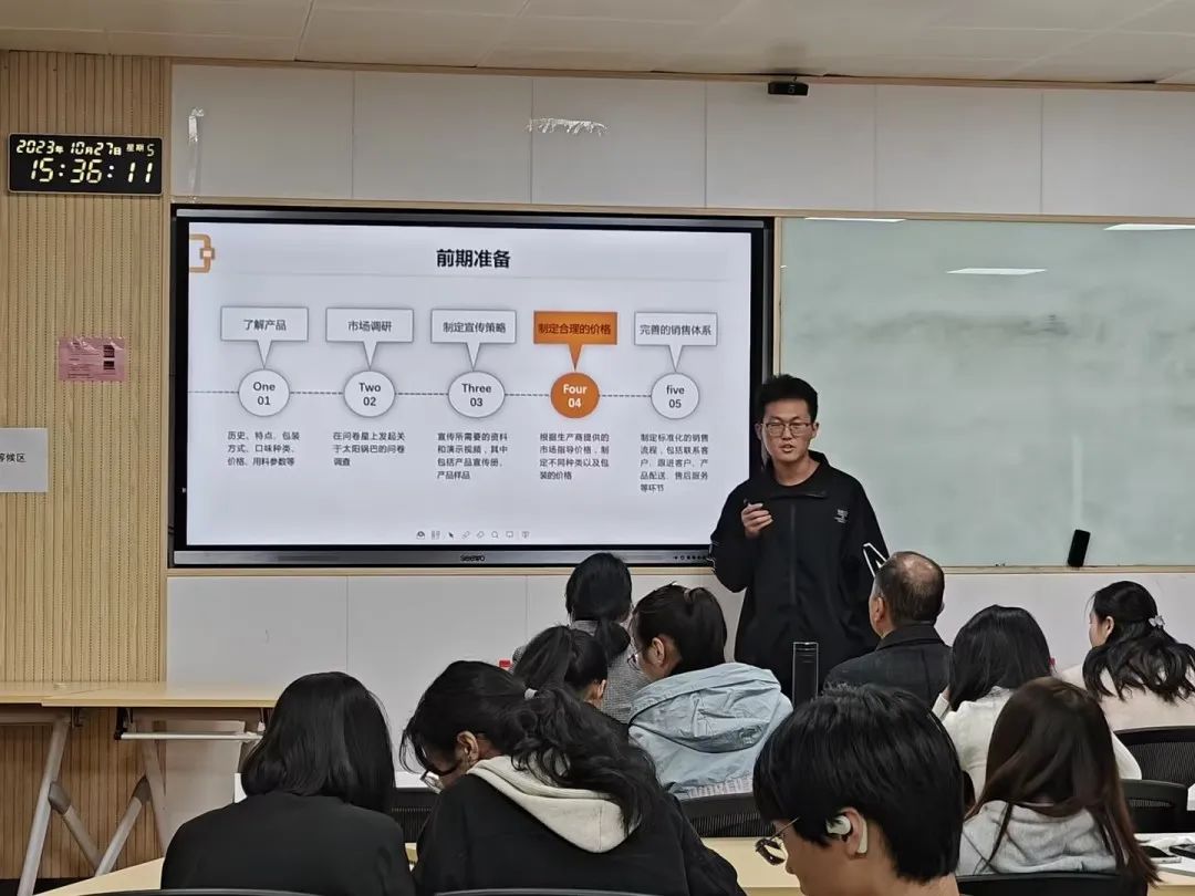 比赛分为三个激烈竞争的赛道,包括短视频创作赛、推广方案赛和实战销售赛。短视频创作赛中,参赛选手呈现了创意迸发的短视频作品,各自传达了关于太阳食品公司的核心价值观。推广方案赛中,学生们详细展示了他们的数字营销策略,包括社交媒体推广、内容营销和品牌建设。实战销售赛则考验了选手的销售技巧和洽谈能力。比赛规则和地点由电商专业带头人石妍老师宣读,各赛道按照抽签顺序进行汇报、评委点评和打分。