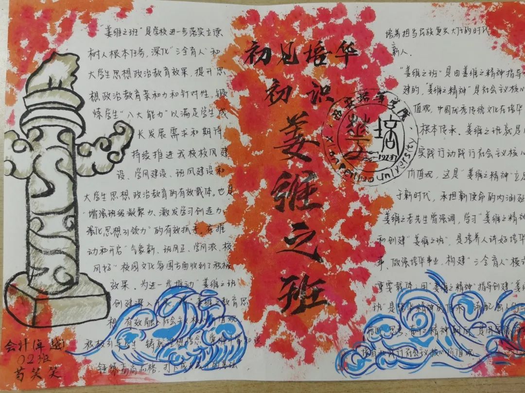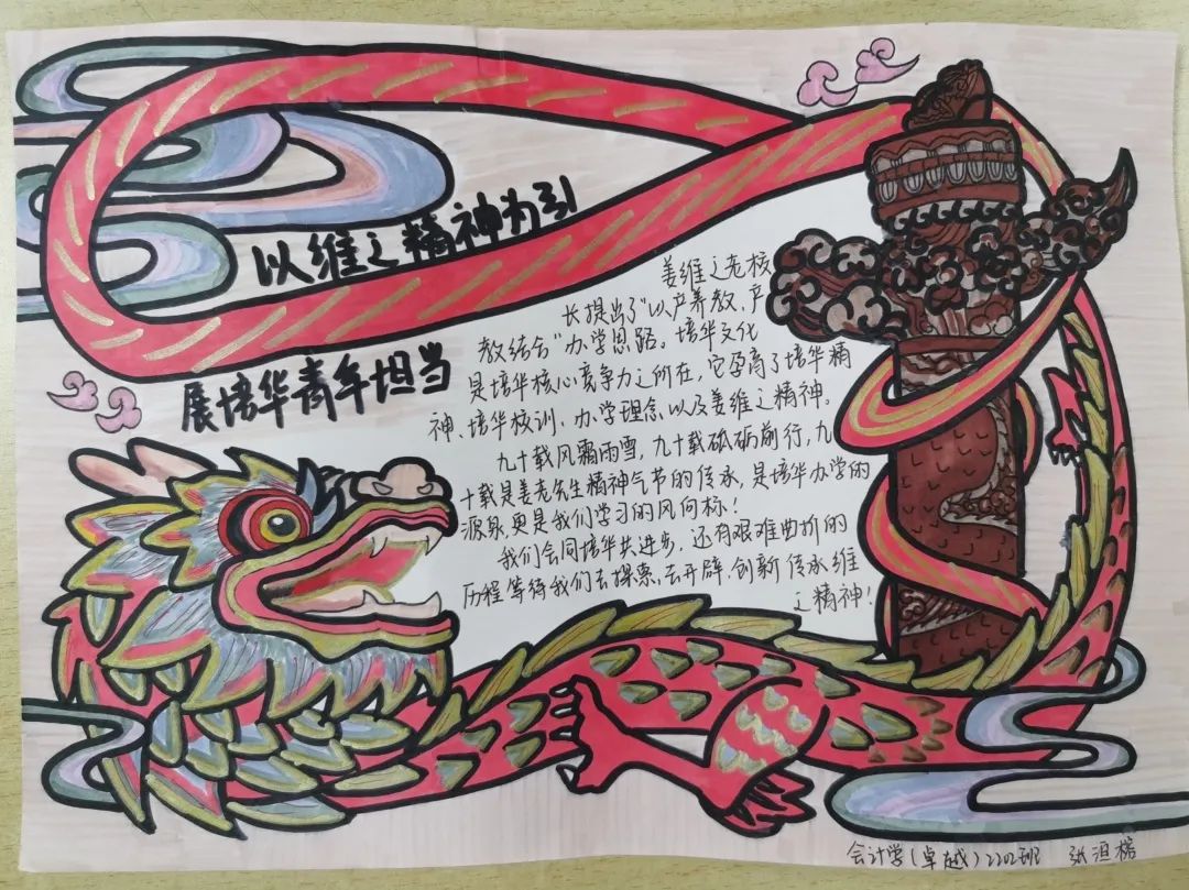 为提高广大学生思想政治素质和“三全育人”工作实效,力求搭建出有活力、凝聚力、创造力的班级文化氛围,值此九十五周年校庆之际,会计与金融学院特举办了“姜维之班”手抄报展示活动。