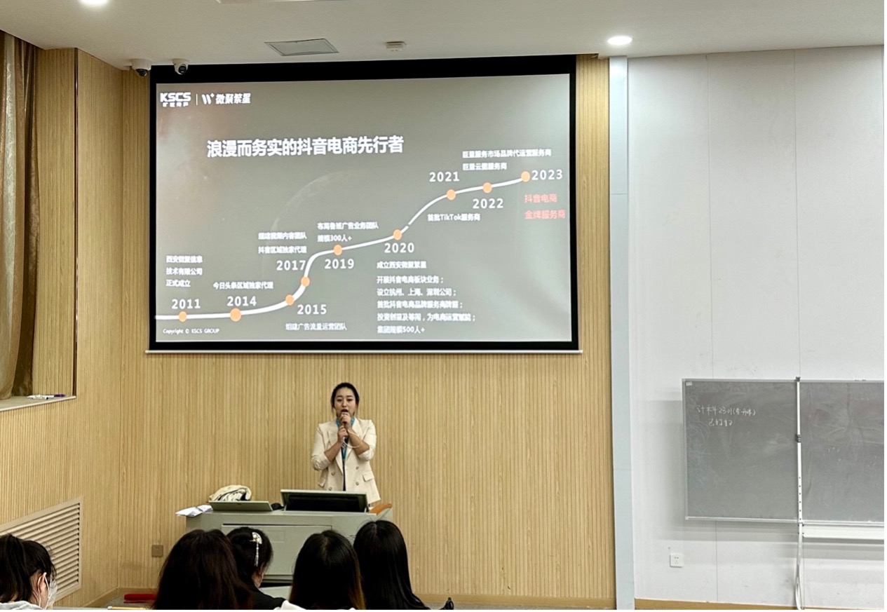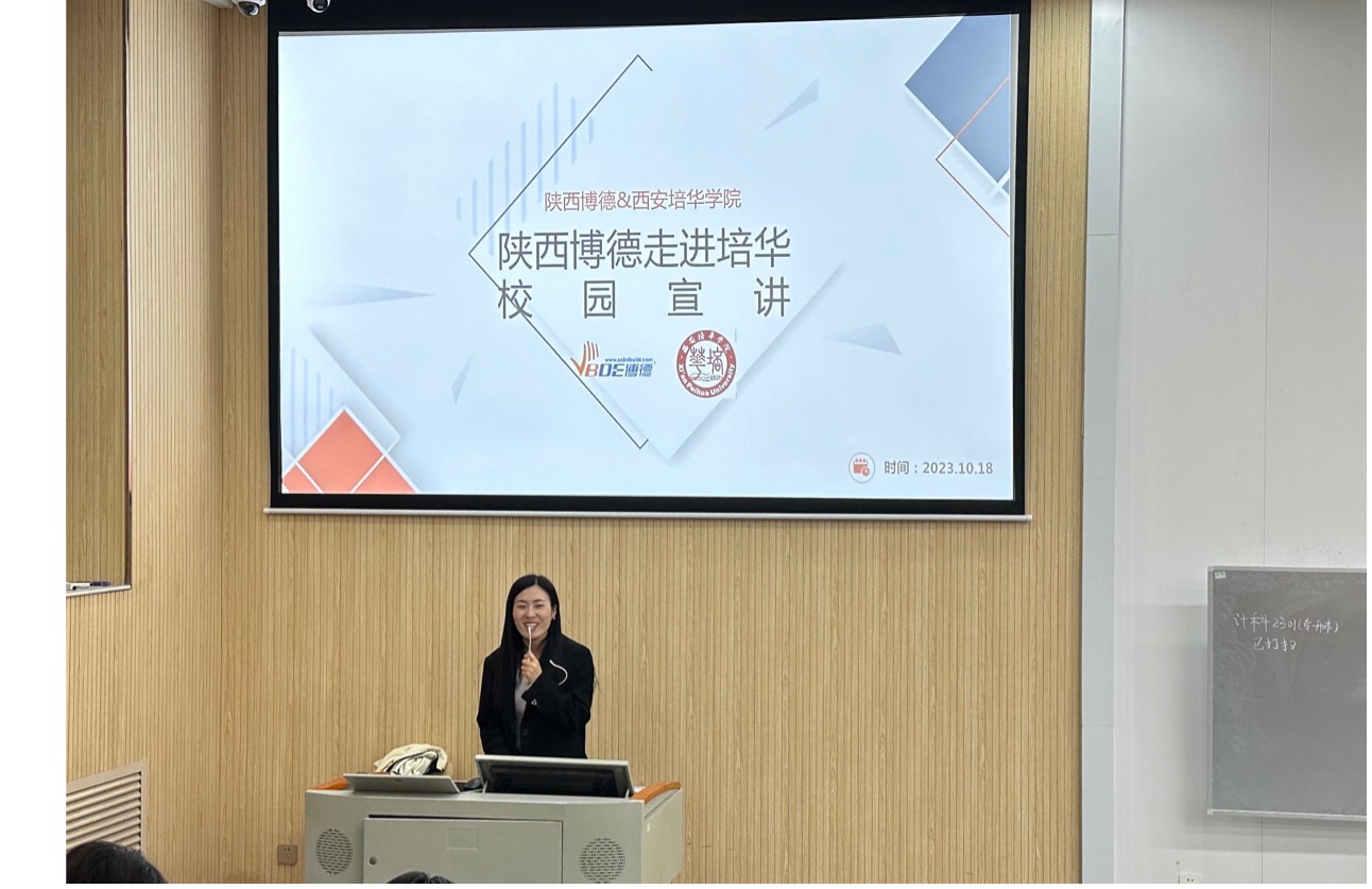 接着是是陕西博德网络传媒有限责任公司,公司代表曹总分享了媒体行业的快速发展和公司的行业地位,鼓励有志于媒体和传播领域的学生积极申请。