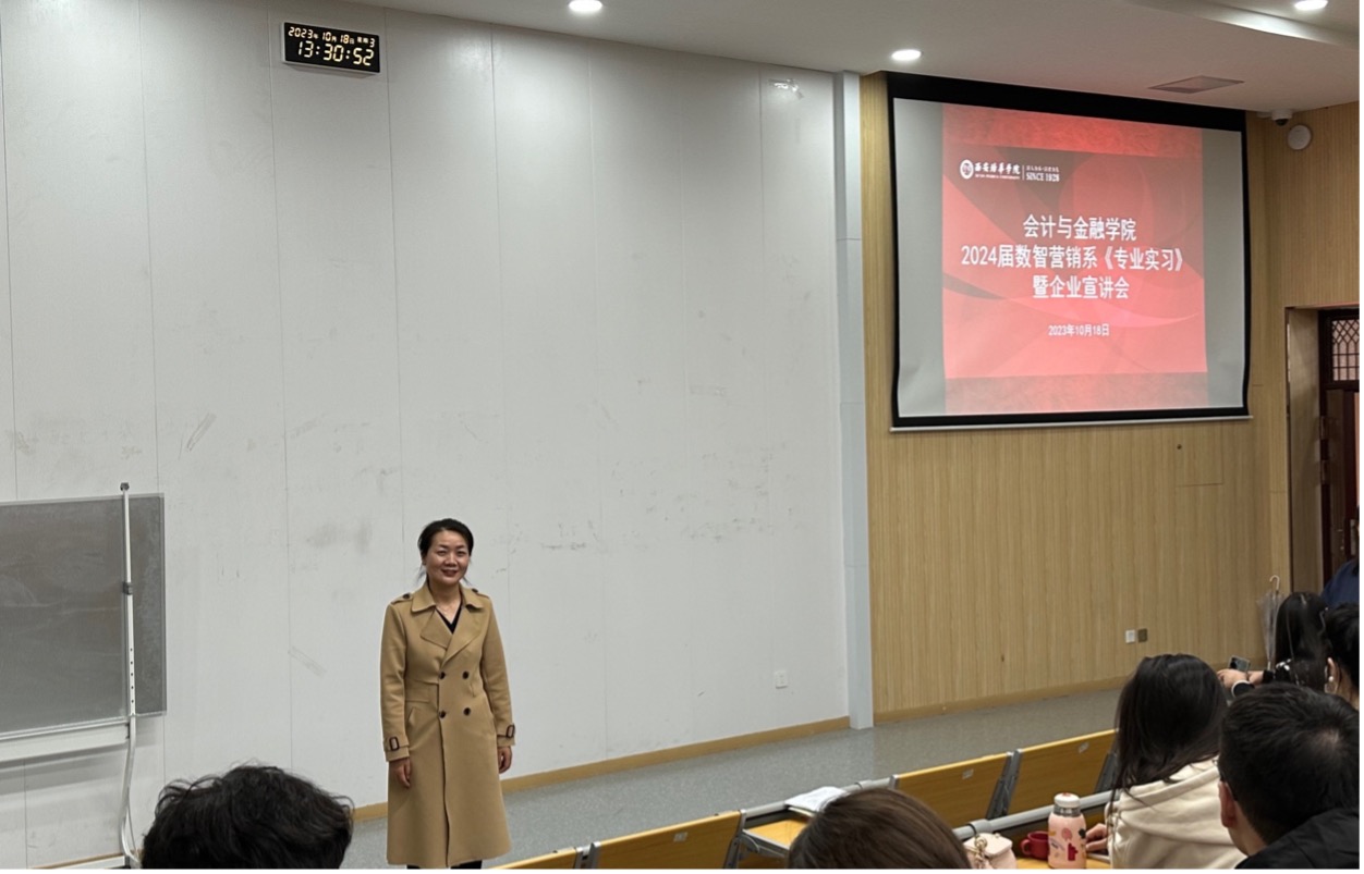 紧接着,电子商务专业带头人石妍教授也为同学们带来了激励人心的讲话。石教授从实习的意义、同学们应该如何选择实习单位以及如何在实习中获得宝贵经验等方面进行了深入的分析和指导。