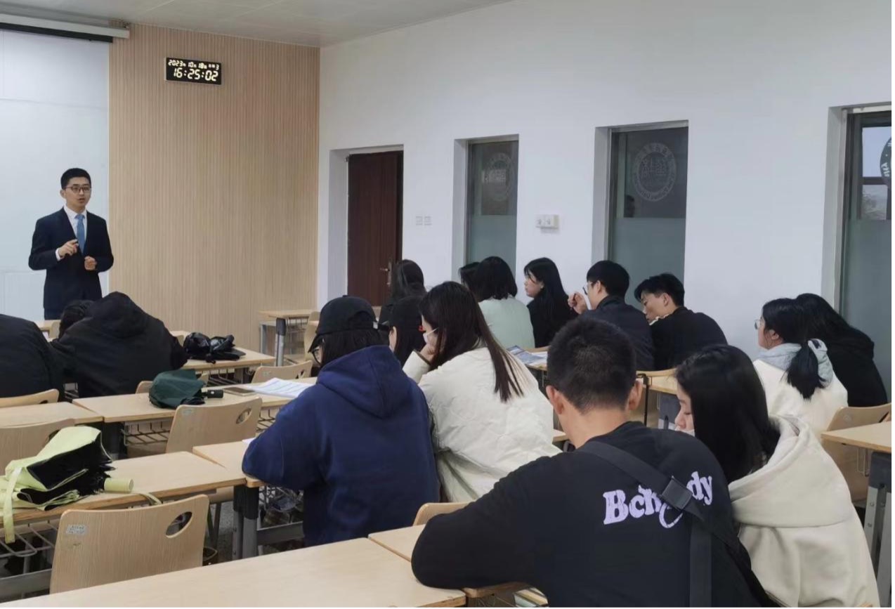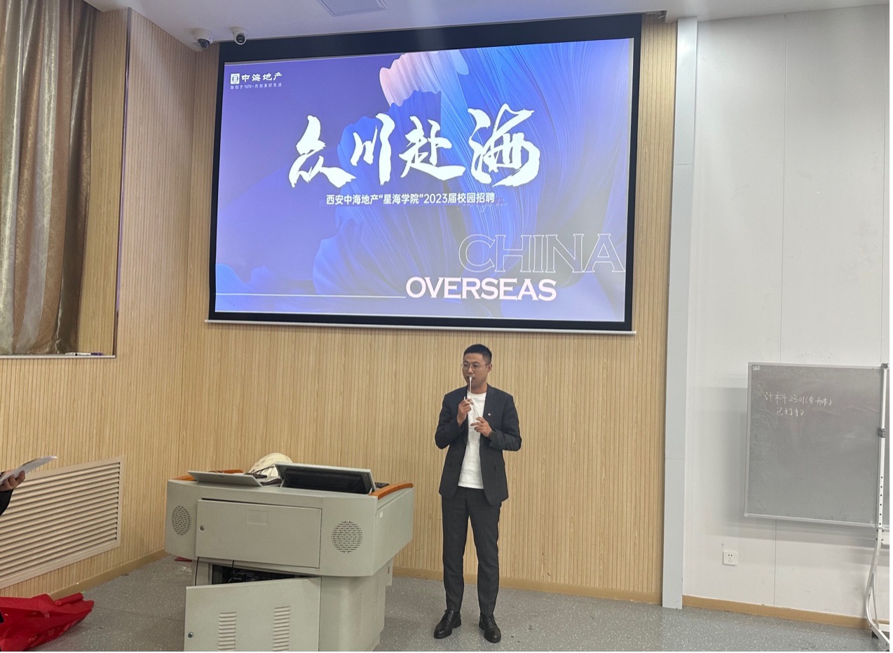 最后宣讲的是中海地产,公司代表郭总分享了中海地产在行业中的领先地位,以及房地产行业的现状和挑战,并强调公司提供的实习机会能为学生的职业生涯发展提供实质帮助。现场气氛热烈,同学们反应积极。