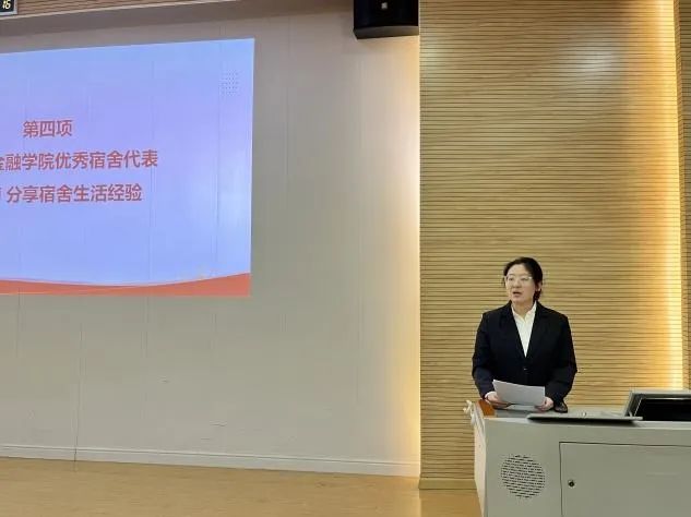 最后,2022级会计学(卓越)1班加烁楠同学作为优秀宿舍代表用自身事例向同学们分享了宿舍安全、卫生、人际交往、学习氛围等各个方面的经验。