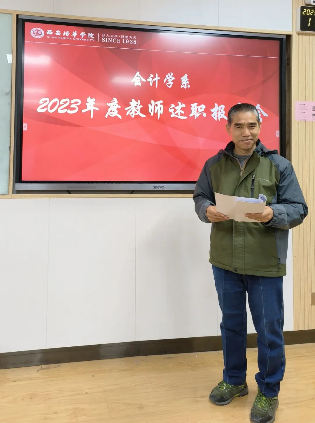冬至岁至,美好如约而至,2023年12月22日,冬至,一个寒冷时刻的温暖节日,会计学系2023年度教师述职报告会于2208室如期召开,教学副院长杨仕鹏教授到会指导。