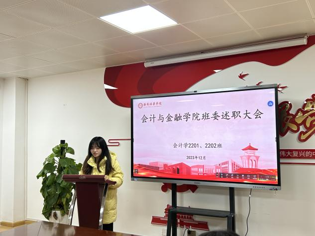2023年12月24日晚,会计与金融学院特组织全院各班级开展班干部述职活动,班干部年度述职不仅是对过去一年工作的总结,更是对未来发展的期许与规划。在这场述职活动中,班干部们倾诉心声,畅谈感受,为班级发展献言献策。他们的责任感和使命感得到了进一步增强,管理能力和沟通能力也得到了锻炼和提升。班级的凝聚力和向心力在此刻汇聚成一股强大的力量,引领着班级同学共同前行。