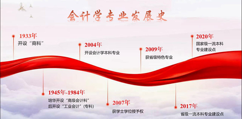 西安培华学院会计学专业初创于1933年,经过长期的建设和改革,获得了社会的普遍认可并享有较高的社会声誉。2007年最早获得“管理学学士学位授予权”;2009年获批“省级特色专业”建设项目;2010年获批“省级重点扶持专业”建设项目;2017年获批“省级一流专业”建设项目;2020年获批“双万计划”国家级一流本科专业建设点。