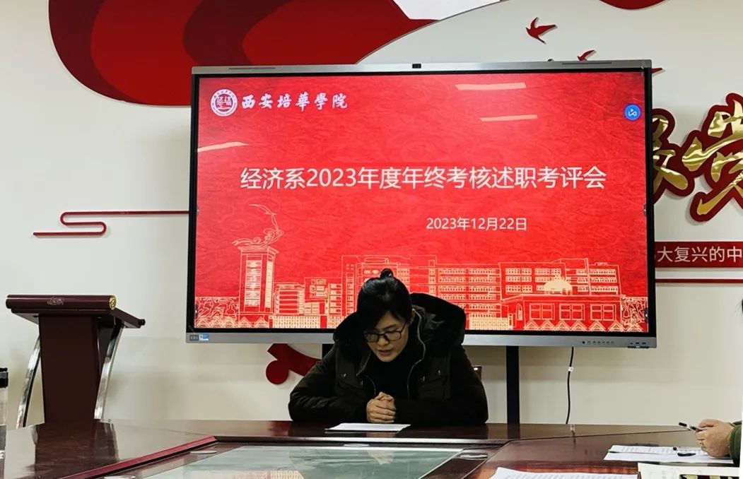 2023年即将结束,为了对本年度教学、科研、行政等工作完成情况进行梳理与总结,经济系于2023年12月22日上午在2115会议室召开了2023年度年终考核述职考评会,系主任、副主任、专业带头人和各位老师对本年工作完成情况进行述职。