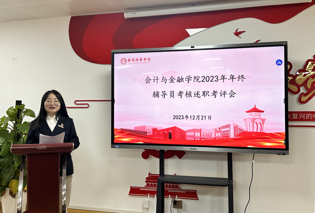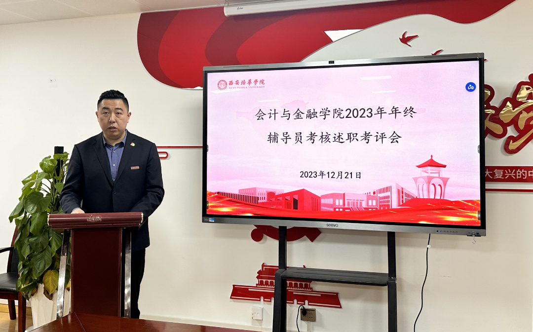 在时光的流转中,我们迎来了年终之际。作为辅导员的我们,在过去的一年里,与学生们一同走过,一同成长。为回顾一年来的工作情况,抒发工作中的体会和收获,会计与金融学院于2023年12月21日上午,在博远楼2115会议室召开了本年度辅导员年终述职大会。此次年终述职不仅是对辅导员工作的总结与反思,更是为了更好地服务于广大学生,为他们的成长提供更有力的支持。