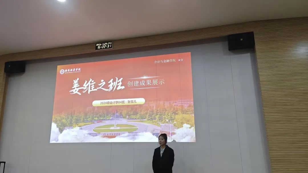 会议第一项,由会计学2004班代表张雪儿进行姜维之班创建成果汇报。姜维之班,是一种精神的传承姜维之班,是集体荣誉感和班级凝聚力的体现,更是学校人才培养的质量与水平的体现。学生代表详细介绍了班级的建设情况和发展目标,以及取得的初步成果,赢得了在场教职工的热烈掌声。