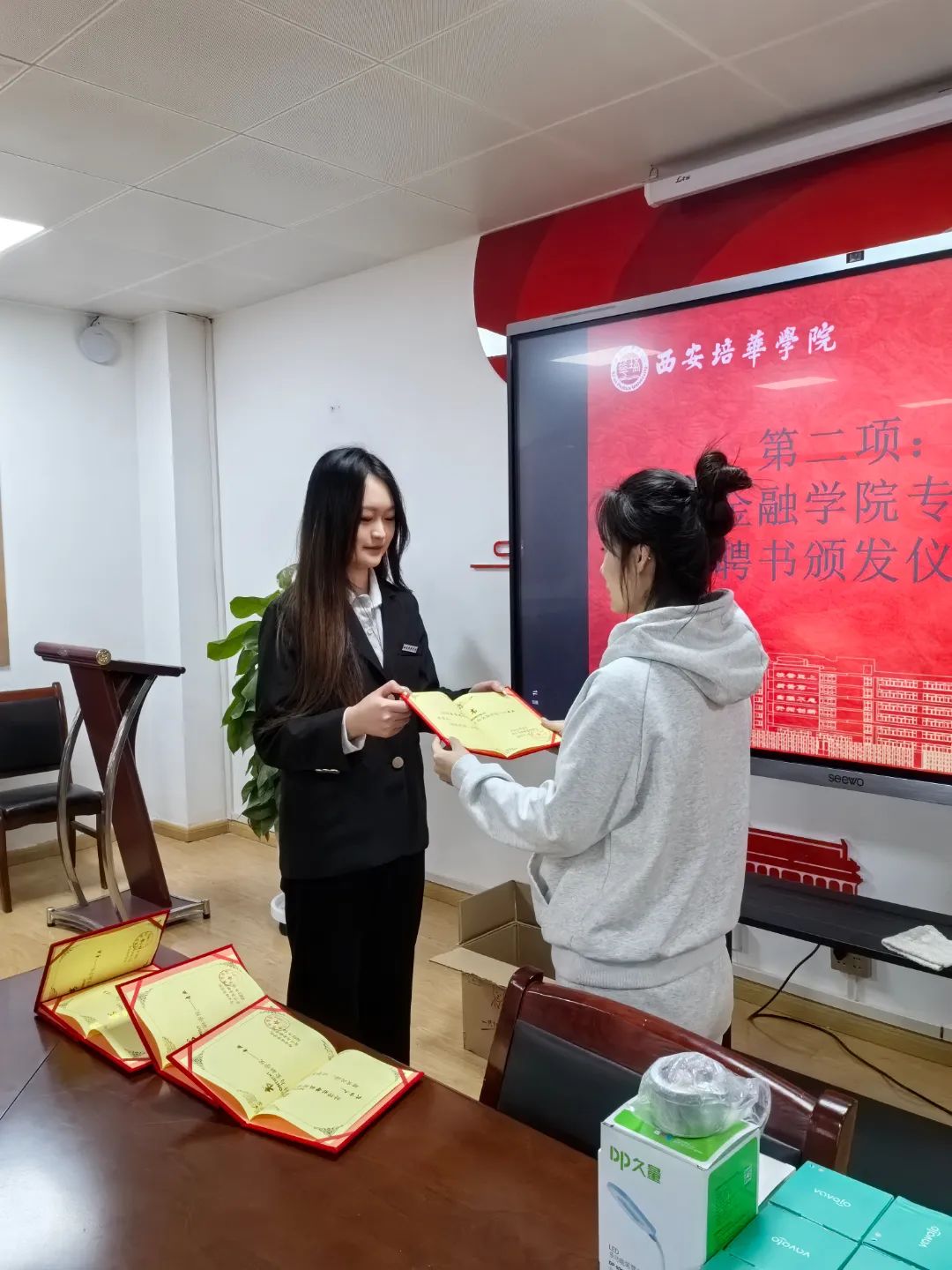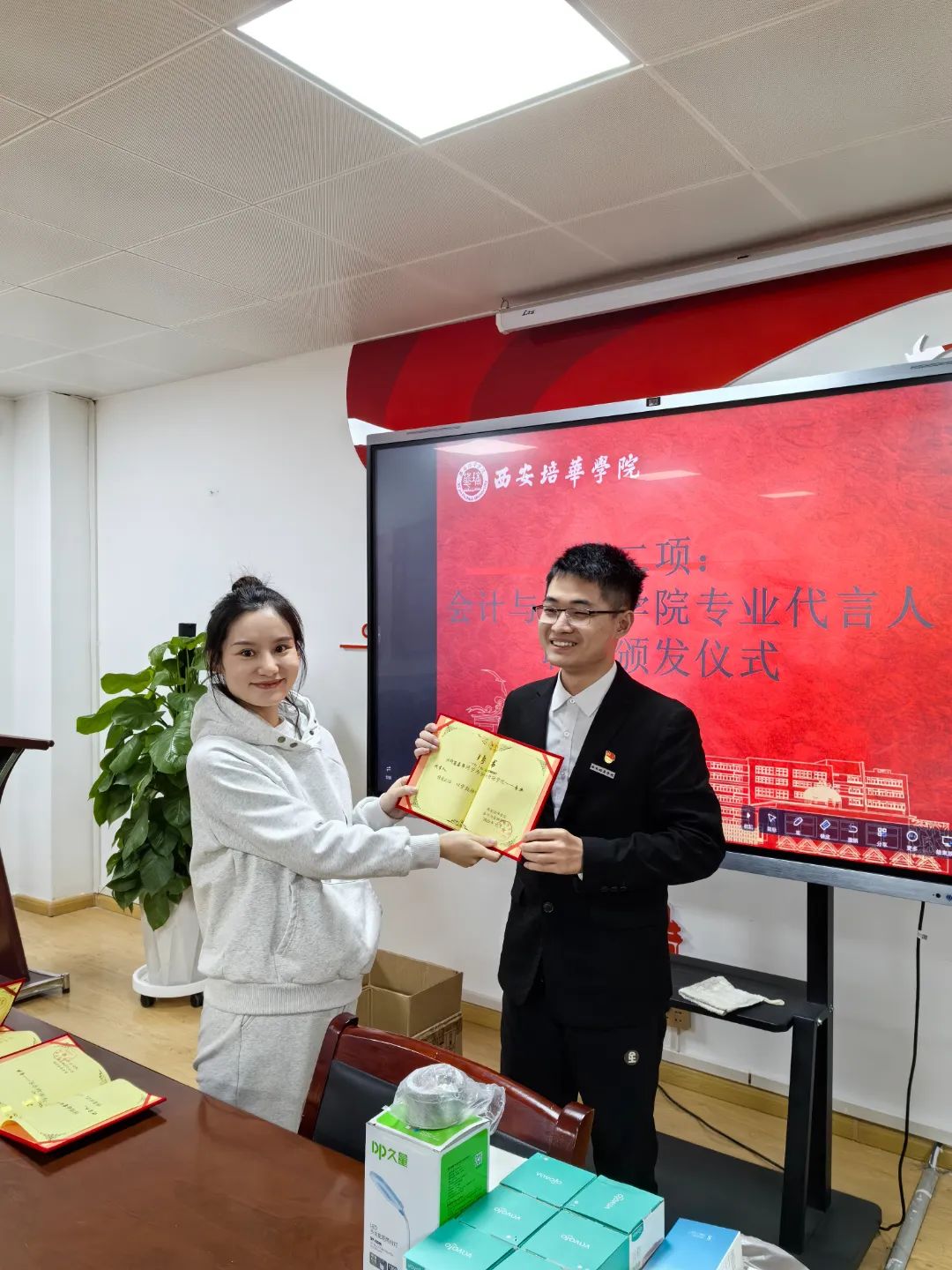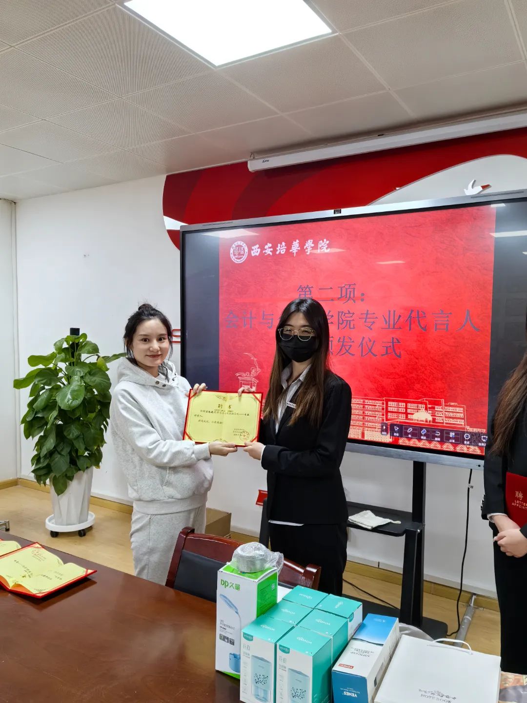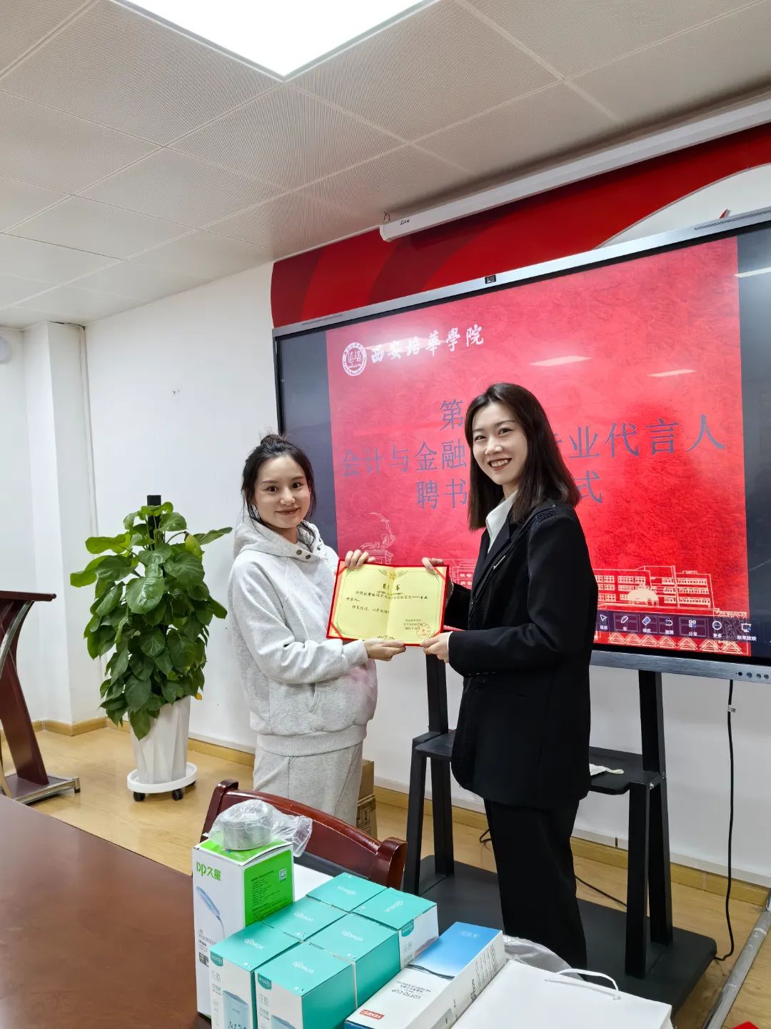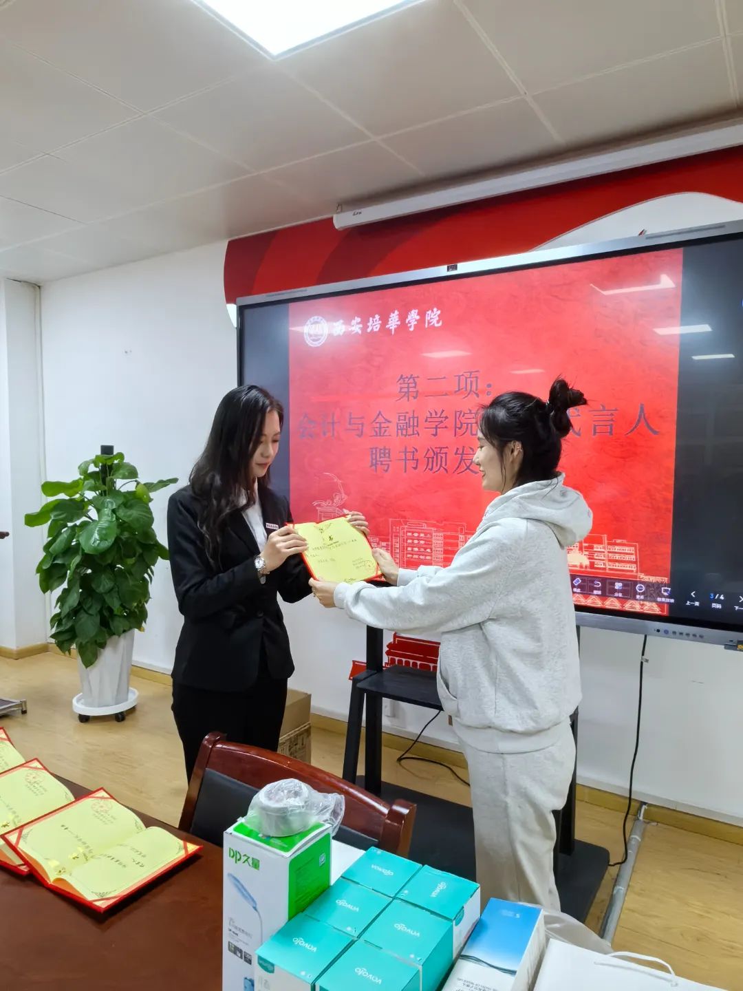 由王敏老师向会计与金融学院专业代言人颁发聘书