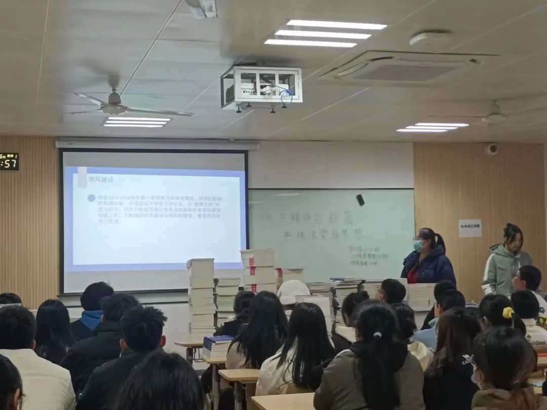 本次班会辅导员主要向同学们深入推进理想信念教育、收心教育、学风建设指导、文明行为教育、校园生活健康教育等,引导学生健康合理地开启新学期学习生活。