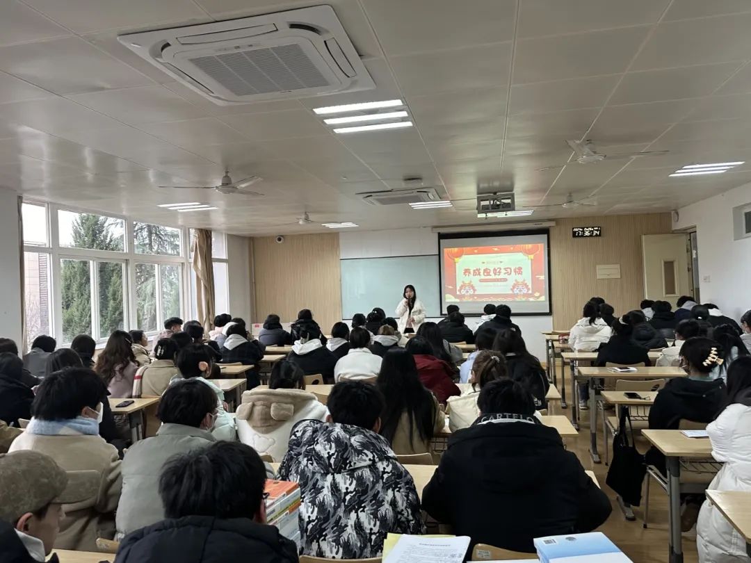 其次,以“姜维之班”创建为抓手,指导学生积极开展优良学风建设、班风建设,营造良好的学习氛围。积极引导学生,调整心态和生活习惯,从松弛的生活状态中聚焦到专业学习、能力锻炼上,逐步养成科学、规律的生活习惯,保持严谨的学风,合理规划大学学习和生活。帮助学生制定新学期学业规划,明确学习目标,增强学习动力。结合 2023-2024 学年第一学期学生学习和考试情况,引导学生查漏补缺,合理规划大学学习和生活。