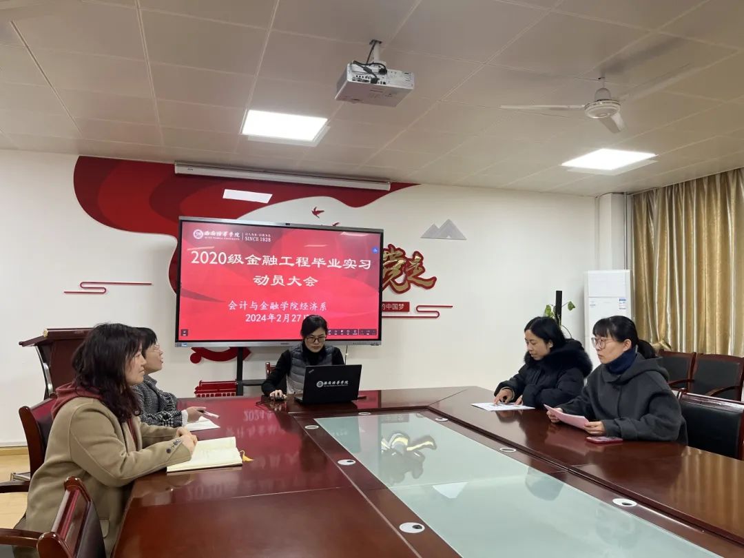 2024年2月27日下午2:00,经济系在2115召开了2020级金融工程专业学生毕业实习动员会的线上会议。参加会议的人员有会计与金融学院经济系主任原亚丽,副主任涂玉侠、专业带头人吴春娜,以及实习指导老师,2020级金融工程专业全体学生参加了本次线上会议。会议由经济系金融工程专业教师袁萍老师主持。
