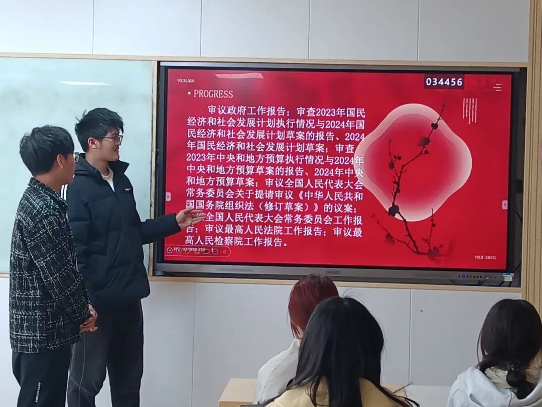 2024年全国两会标注下新的方位,传递出咬定青山不放松的坚定信心,吹响了风雨无阻向前行的奋进号角。借此会计与金融学院积极响应两会2024年3月12日,我院在2201教室就全国两会组织召开思想报告学习会。会上,我们就会议内容进行汇报总结,分享学习。