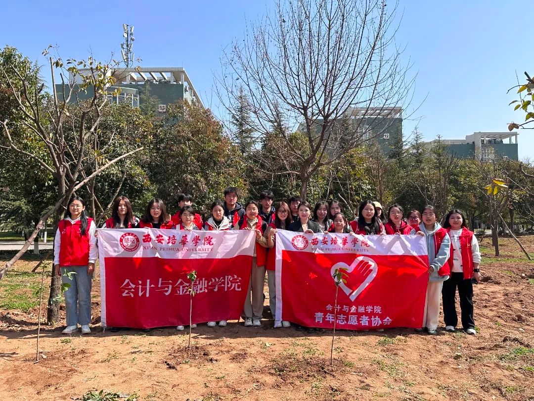 植树现场阳光明媚、微风和煦,同学们精神抖擞、干劲十足、热情高涨,大家严格按照标准挥锹铲土、扶苗填坑、踏土固根,每一滴汗、每一铲土都体现着对绿色的向往、诠释着对大自然的热爱。当一排排整齐的树苗在春风中落地生根、迎风而立,焕发出盎然生机,也意味着青年志愿者们为西安培华学院又增添了一抹绿的色彩、贡献了一份青春力量。