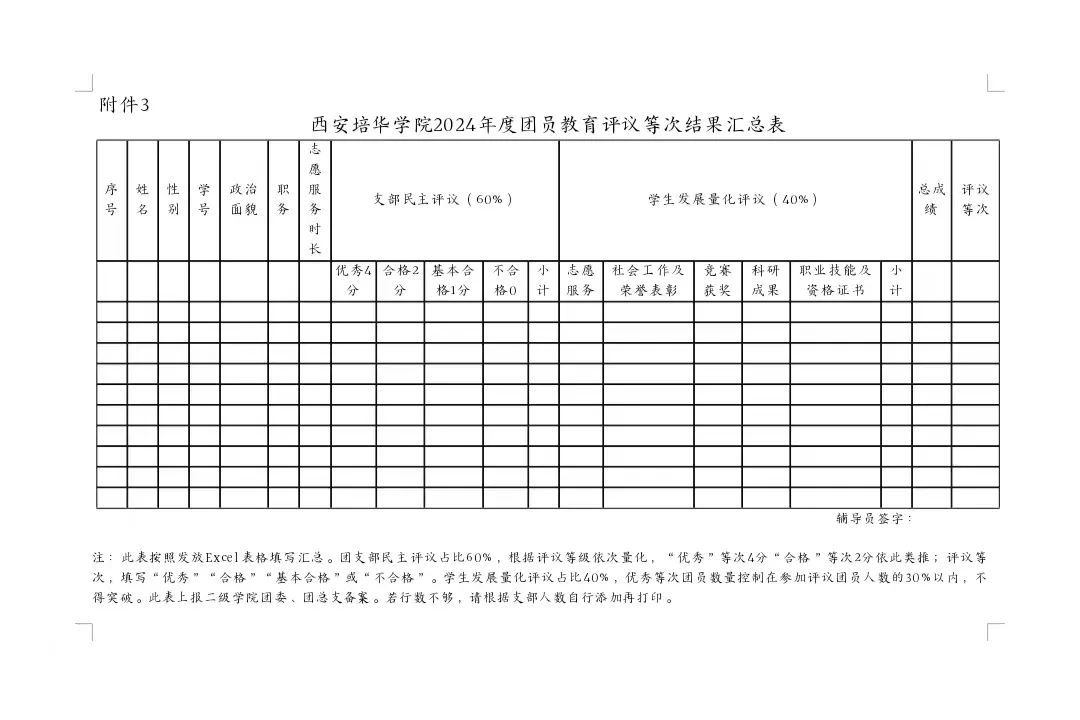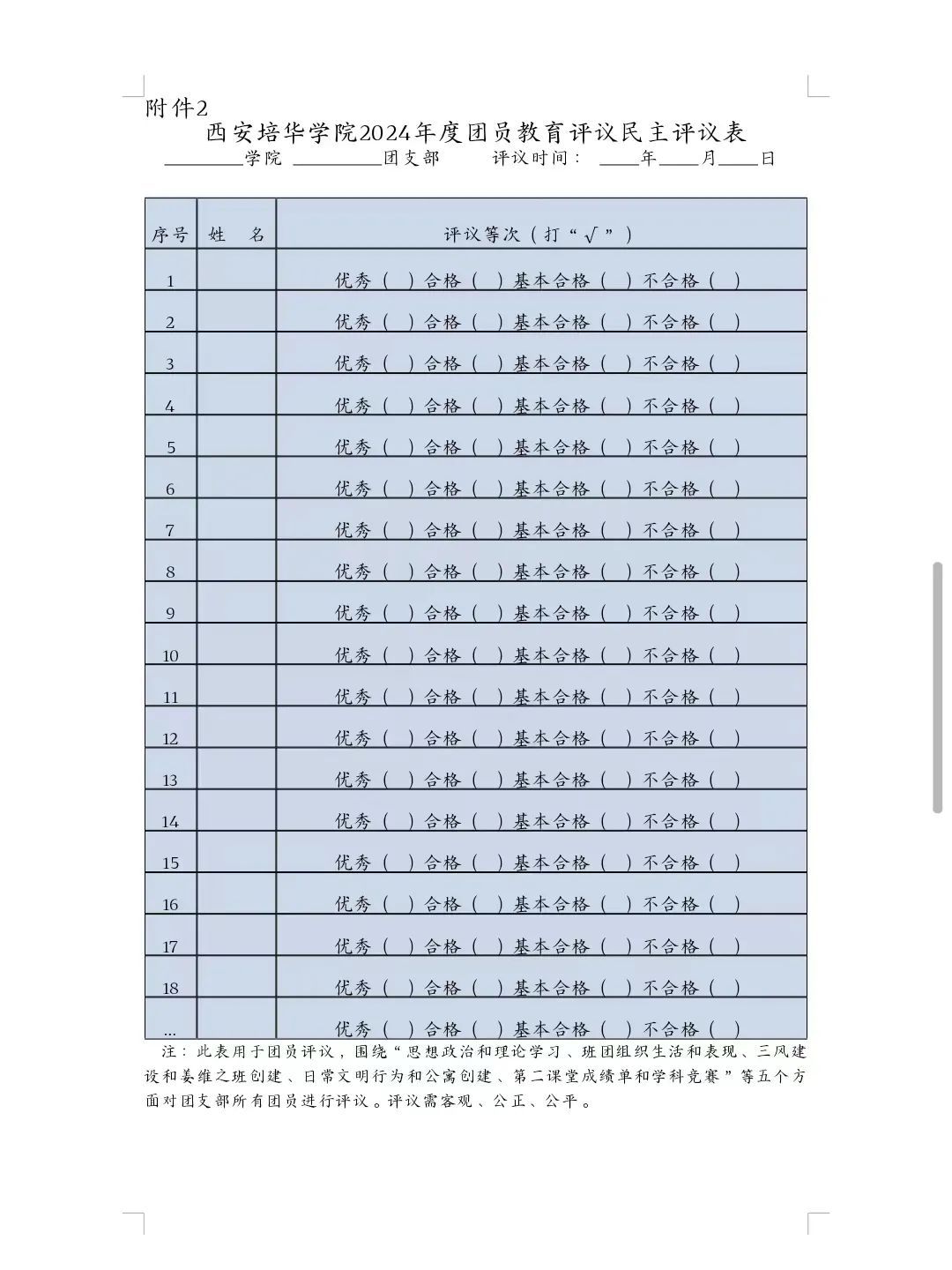2.各团支部在评议活动中,要统一团员教育评议大会的板书:“青春践行二十大挺膺担当建新功-2024年团员教育评议大会,落款为共青团西安培华学院会计与金融学院委员会,XX专业XX级X团支部”。要注重保留活动现场照片,将评议过程以图文并茂的形式进行记录,形成新闻稿件,照片比例3:2,新闻稿以Word形式(标题宋体三号,正文宋体小四)报送,将照片与相关材料放置于同一文件夹,压缩为压缩包,请各位团支书于3月22日前将相关材料提交于团委邮箱2016408547@qq.com。