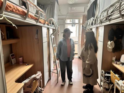 学院全体辅导员老师逐间走访了学生宿舍。在此次走访中,宿舍整体情况较好,宿舍室内、阳台物品摆放较为规整,地面、洗漱台、洗手间较整洁,绝大多数宿舍能够主动开展宿舍大清扫,积极参与劳动。但个别宿舍仍存在门口楼道处堆放垃圾杂物、门贴及我为师生办实事张贴不规范等问题。针对以上问题,辅导员老师逐一进行了提醒并要求问题宿舍现场改正。