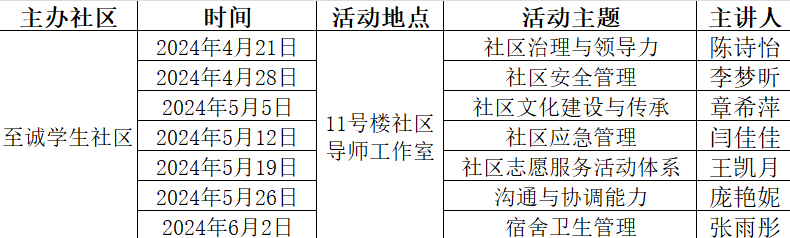 至诚社区11号公寓自律委员会主席团成员做个人工作计划分享。主席团成员注重发挥自律委员会在公寓文化建设中的作用。他们计划组织一系列丰富多彩的文化活动,如公寓才艺比赛、读书分享会等,增进同学们之间的交流与互动,提升公寓的文化氛围。
