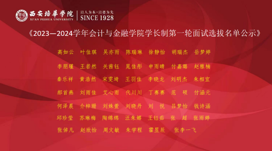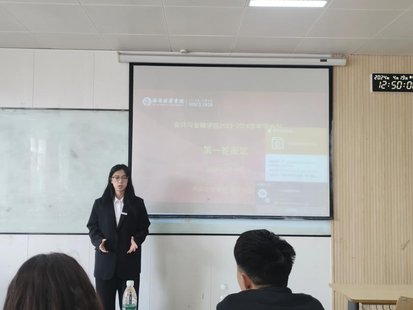 本次面试评审团由会计与金融学院辅导员张锋涛、孙宝丽、刘经纬、赵娅囡、赵琦、赵梦莹作为教师代表,学长制负责人赵文华、崔明星、赵静怡、段梓熙、李阳、马欣雨作为学生代表,共同组成。