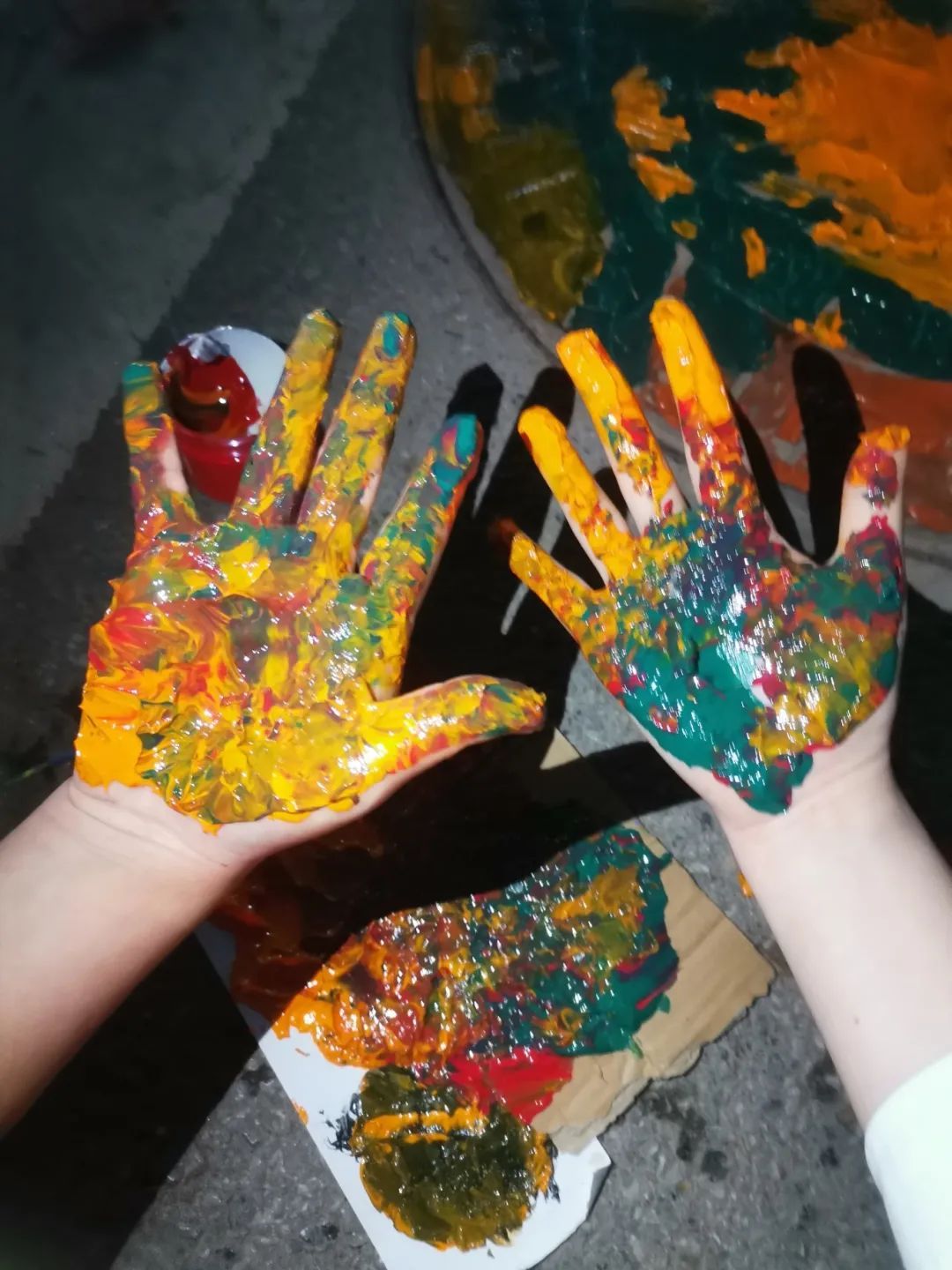 即使满手颜料还在坚持创作
