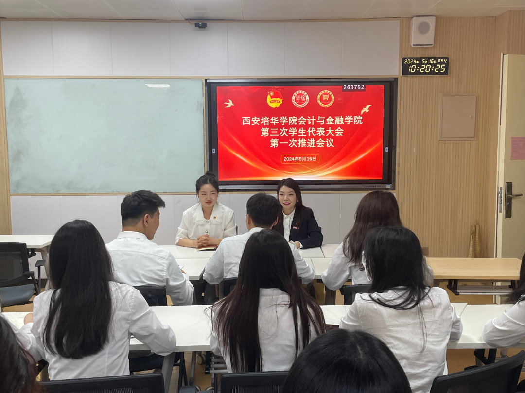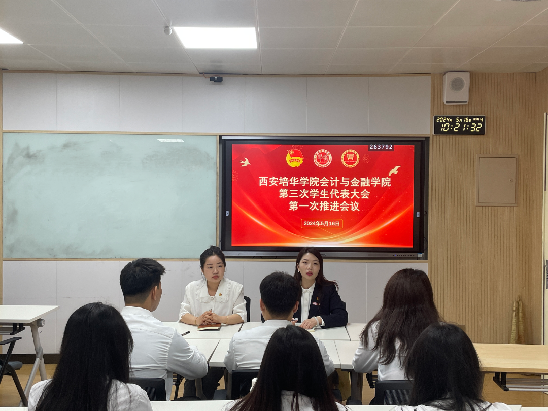 学生代表大会是学生政治生活中的一件大事,也是学生会回顾工作、总结经验、规划未来的重要契机。为了更好地举办西安培华学院会计与金融学院第三次学生代表大会(以下简称学代会),推进学代会进程,明确学代会职权,加强学代会前的沟通交流,西安培华学院会计与金融学院学生会于2024年5月16日在博远楼2204教室召开了学代会第一次推进会。