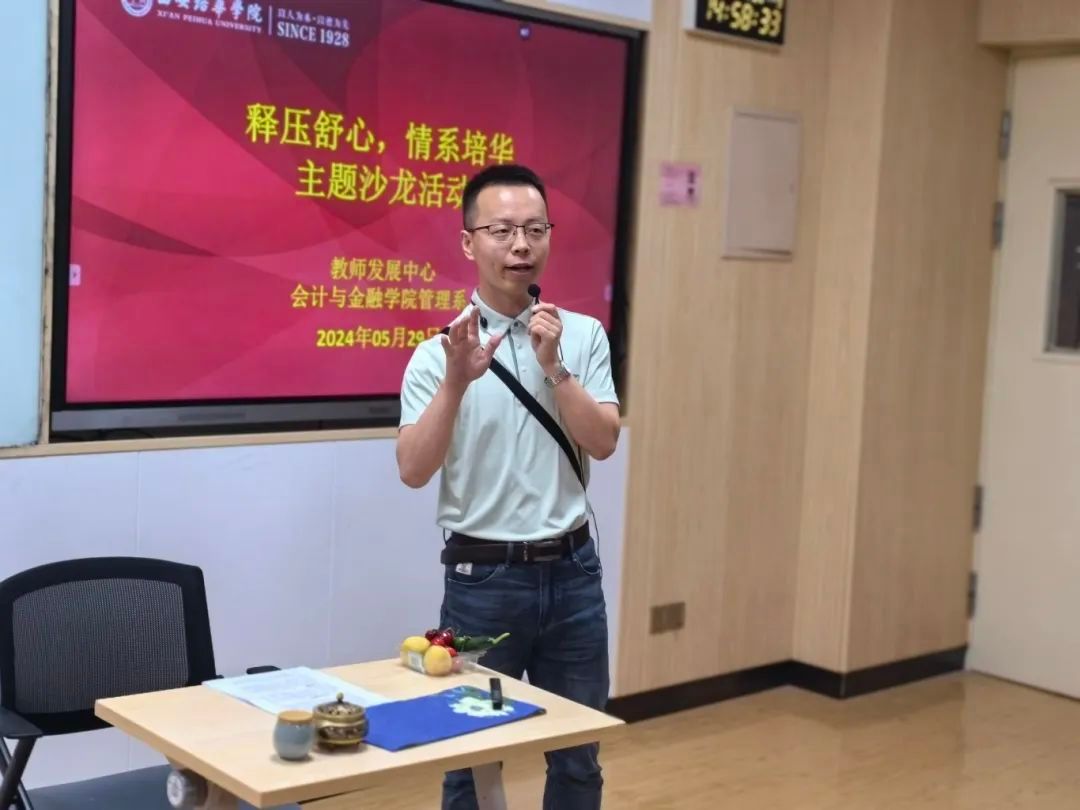 在高等教育日益繁荣的今天,高校教师肩负着培养未来人才的重任,同时也面临着日益严峻的生活工作压力。为了关注教师心理健康,提供一个相互交流与释压的平台,由西安培华学院教师发展中心和会计与金融学院管理系共同主办的“释压舒心,情系培华”沙龙活动于2024年5月29日下午在2201智慧教室成功举行。参与本次沙龙活动的有来自学校各个学院的老师以及管理系全体教师。