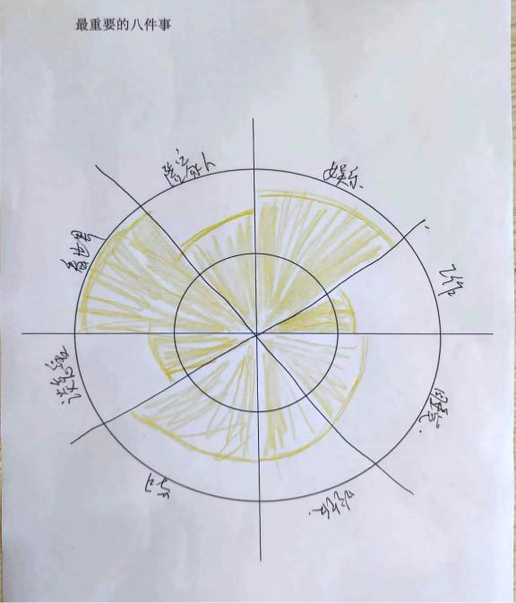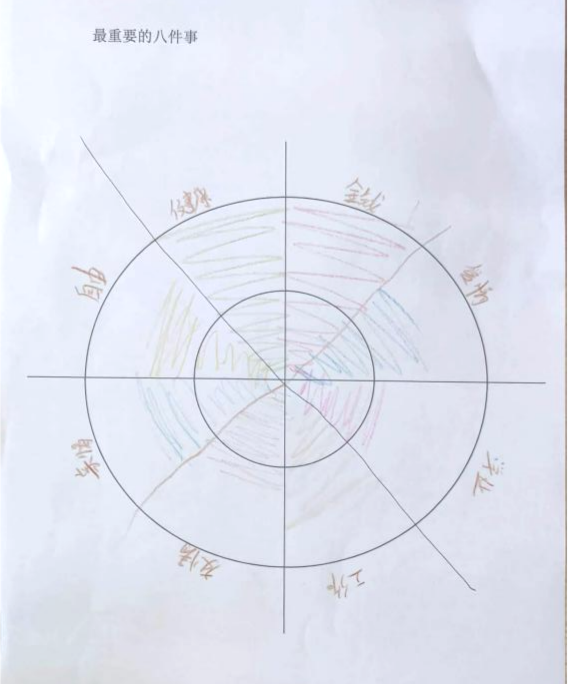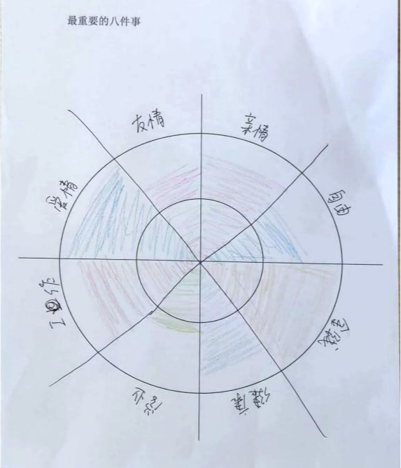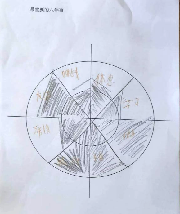 WORK DAY在活动现场,心的方向朋辈互助会引领同学们深入探讨了生活中至关重要的八项要素。那些关乎成长、学习、爱情、友情、健康、兴趣、职业和精神的基石。在互助会的引导下,每位参与者都拿起画笔,用心绘制出属于自己的生命平衡轮。这个过程中,大家从多个维度全面审视了当前的生活状态,如同夏日的阳光照亮了每一个角落,让我们看清了生活的多彩与多元。