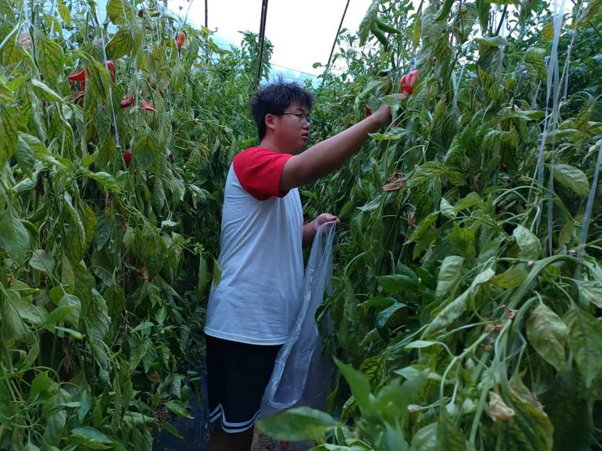 队员们进行了明确的分工并且相互协同合作,即便菜棚里蚊虫肆虐,也丝毫没有让他们停下手中的劳作。他们毫不畏惧蚊虫的侵袭,队员们充满了干劲,没过多久就采摘了辣椒,极大地减轻了菜农的采摘负担。他们尽情享受着劳动带来的快乐,深深体会着收获带来的欣喜,每个人的脸上都绽放着灿烂的笑容。