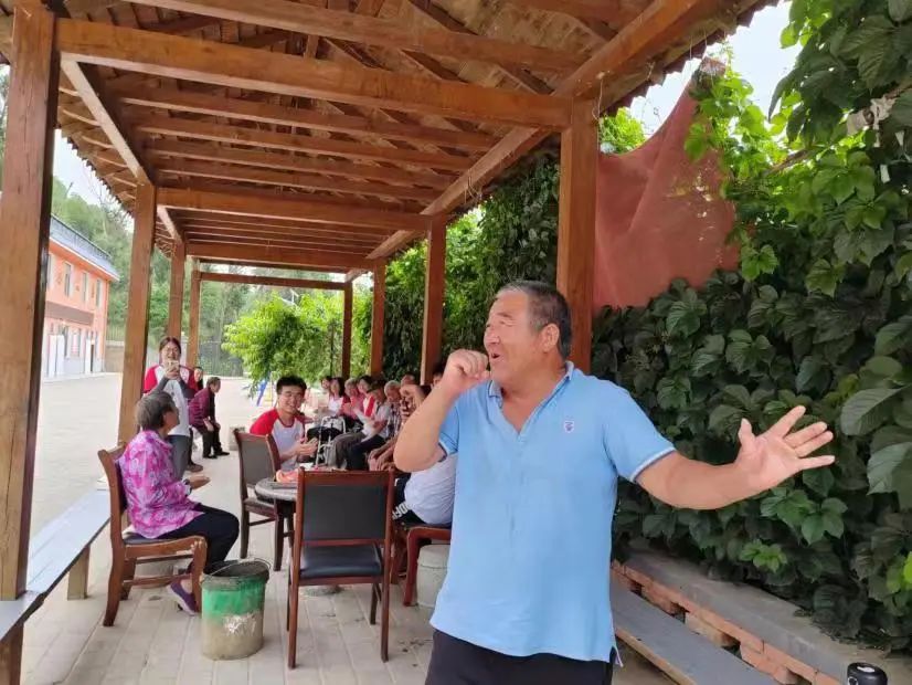成员们在活动现场,向老人们表演了红色歌曲与陕北民歌。随着轻松愉悦的音乐响起,老人们脸上洋溢着专注和快乐的神情,欢快的氛围和动听的歌声迎来了老人们的掌声和一致赞扬。老人们兴致勃勃地跟着成员们的一起演唱,有一位老人演唱了“山丹丹花开红艳艳”,一位老人演唱了“没有共产党就没有新中国”,唱歌的老人自信洋溢,声音雄厚嘹亮,赢得了阵阵掌声。悠扬的音乐为大家带来了治愈感和幸福感,这温馨快乐的时刻是属于大家的记忆。