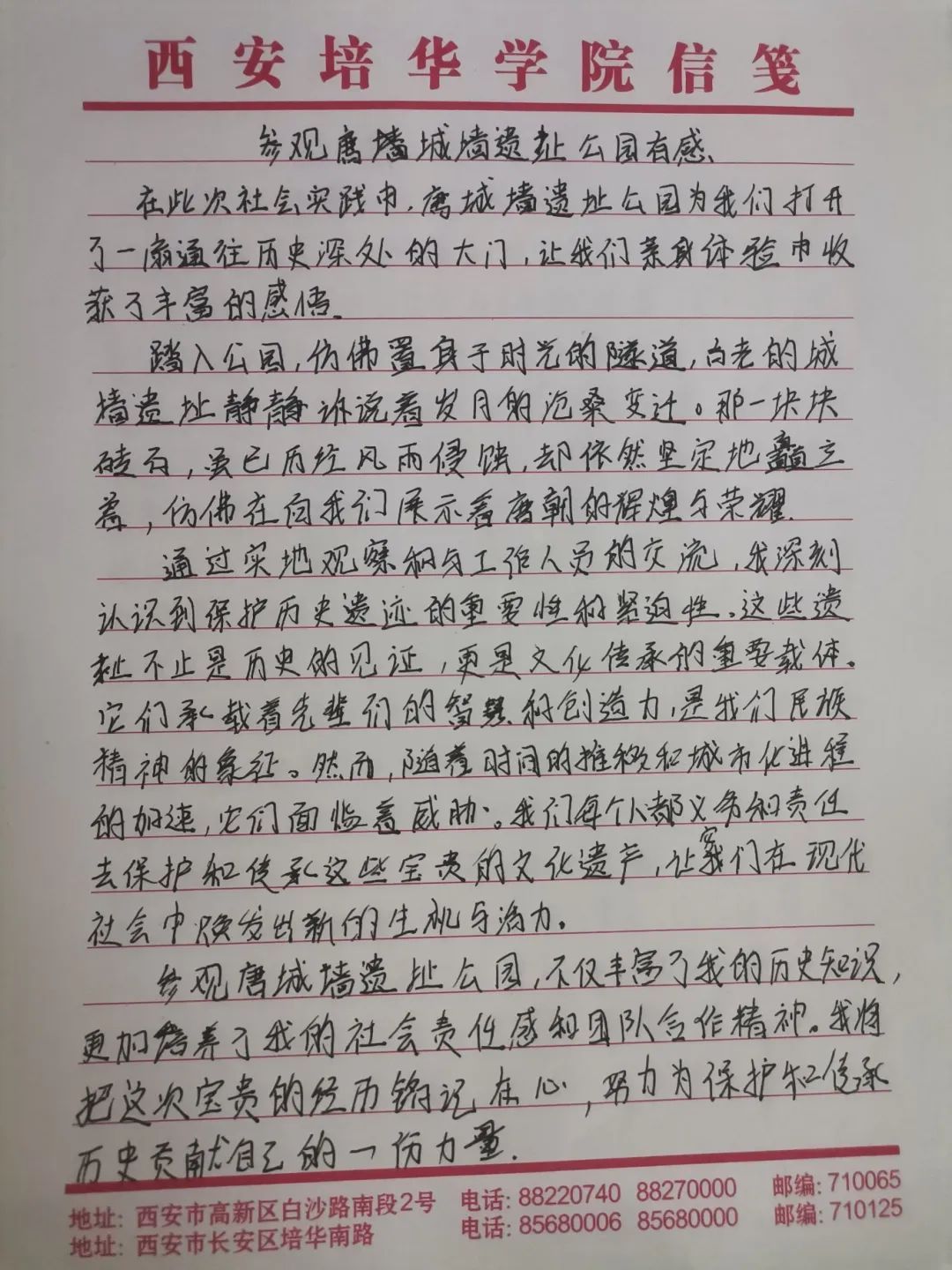 “唐韵遗风,古都新梦”。在这次社会实践活动中,成员们不仅收获了知识、增长了才干,更感受到了中华文化的无穷魅力。他们将把这次经历作为宝贵的人生财富,激励自己不断前行、追求卓越。