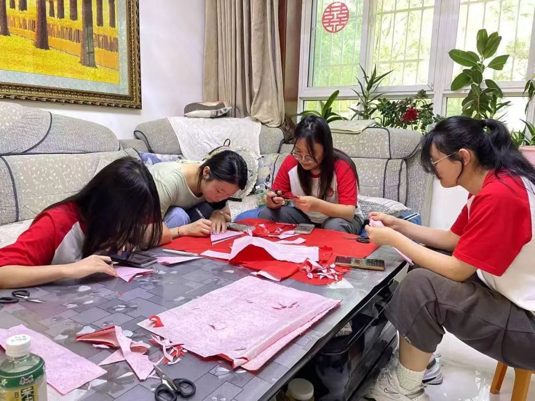 7月17日上午9点半,8名来自西安培华学院心潮文化社会实践队成员齐聚延安市安塞区沿河湾镇,初步认识和学习剪纸,感受蕴含的文化与探索文化传承的脉络。当剪刀的咔嚓声响起,秀美的纹路在纸面蜿蜒而下,一幅幅栩栩如生的剪纸在数个小时的劳动里诞生,学员们在一次次尝试中感受剪纸文化的温度。