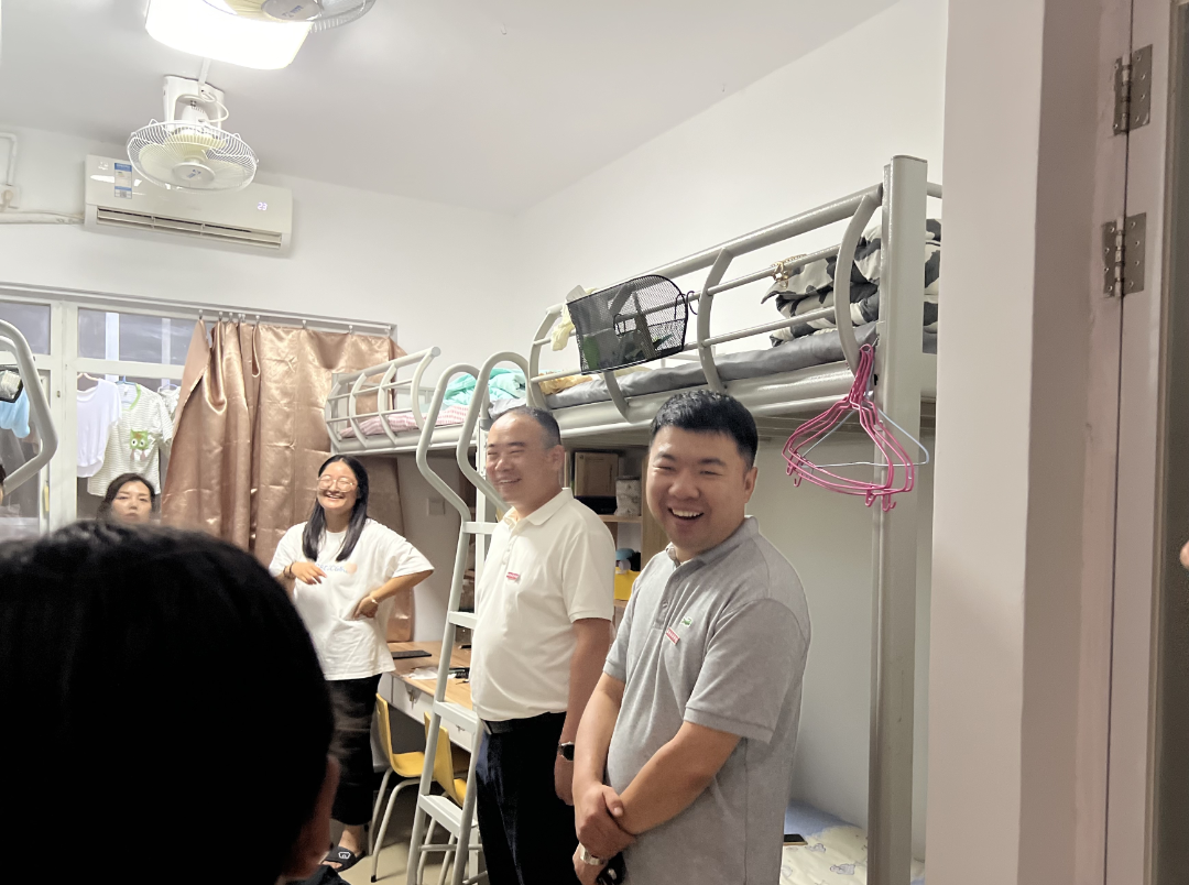领导们走进一间间宿舍,与学生亲切交谈,了解学生初来乍到的感受和需求。关心着同学们对新环境的适应情况,并积极鼓励同学们尽快融入新的集体,适应新环境的生活节奏,充分利用学校的优质资源,努力提升自己的专业素养和综合能力。