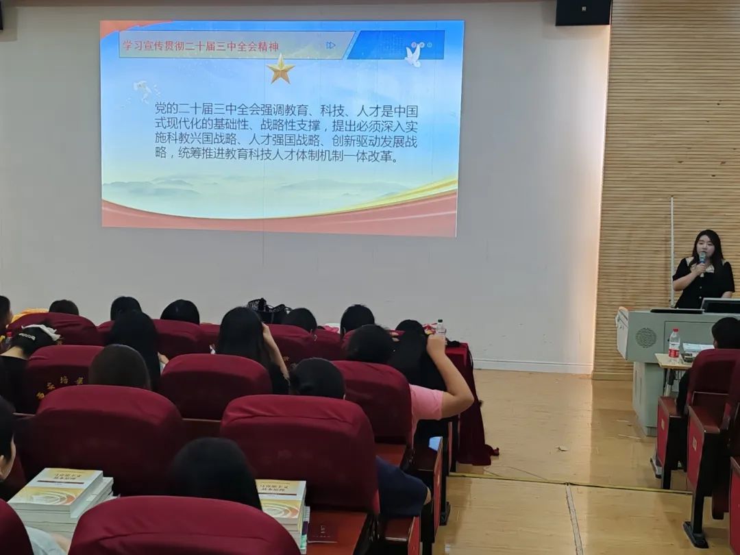 最后,班会还组织学习了党的二十届三中全会精神。通过深入解读会议精神、分析当前形势和任务要求等方式,引导同学们深刻领会党的决策部署和战略意图。大家纷纷表示要牢记使命、勇担重任,积极投身强国建设、民族复兴的伟大事业中去。