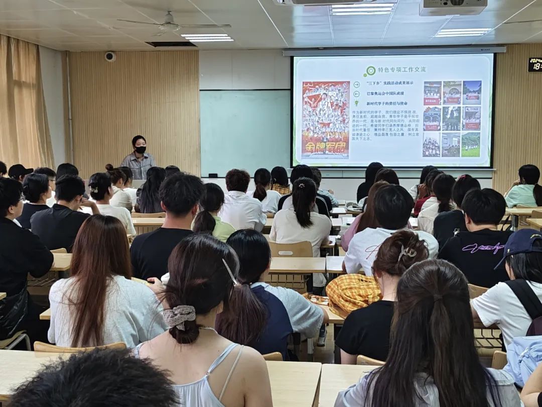 其次,进行了特色专项工作交流,密切师生互动。结合暑期“三下乡”实践活动和巴黎奥运会等热点话题,班会引导同学们进行了热烈的交流与探讨。通过分享实践经验、学习奥运精神,激发了同学们的爱国热情和社会责任感。大家纷纷表示要以奥运健儿为榜样,不惧挑战、勇往直前、超越自我,为国家的繁荣富强贡献自己的力量。班会还强调了完善常态化“接诉即办”工作机制的重要性。鼓励同学们积极与老师沟通交流,共同构建和谐的师生关系和校园环境。