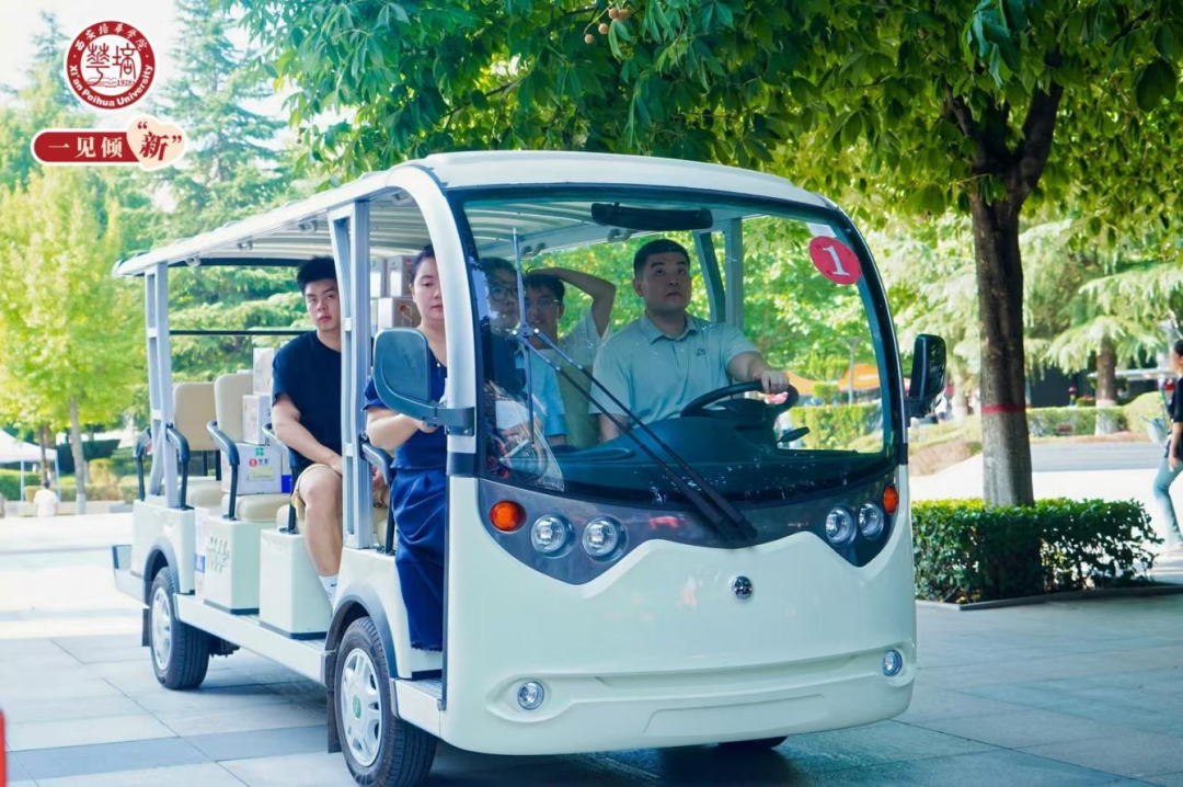 进入校园,如果行李过于沉重可以乘坐我们的小火车。当然,如果想要沿途欣赏美景,走路也是不错的选择。校园中,迎新标语鲜艳夺目,为新环境增添了一抹亮色。几乎每个路口都有志愿者或引导牌为新生指路,新生接待服务站还贴心地准备了美味可口的小零食。如果累了,就到那里歇歇脚,再继续赶路吧!
