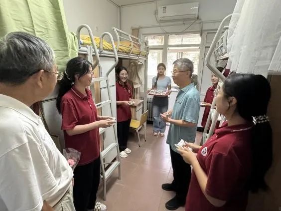 随后,刘锋书记和赵选民院长一同走访了6号宿舍,慰问同学们。每到一个宿舍,书记和院长都与同学们亲切交谈,询问他们的生活状况,关心他们的学习进度,并送上中秋佳节的祝福。同学们纷纷表示,在这个特殊的日子里,能收到书记和院长的慰问,感到非常温暖和感动。