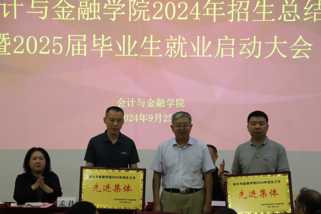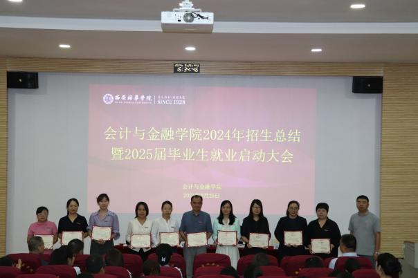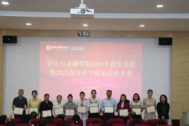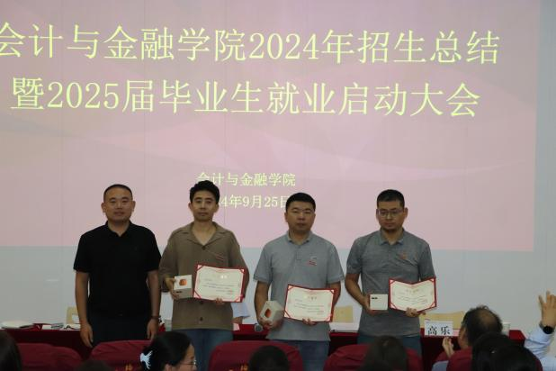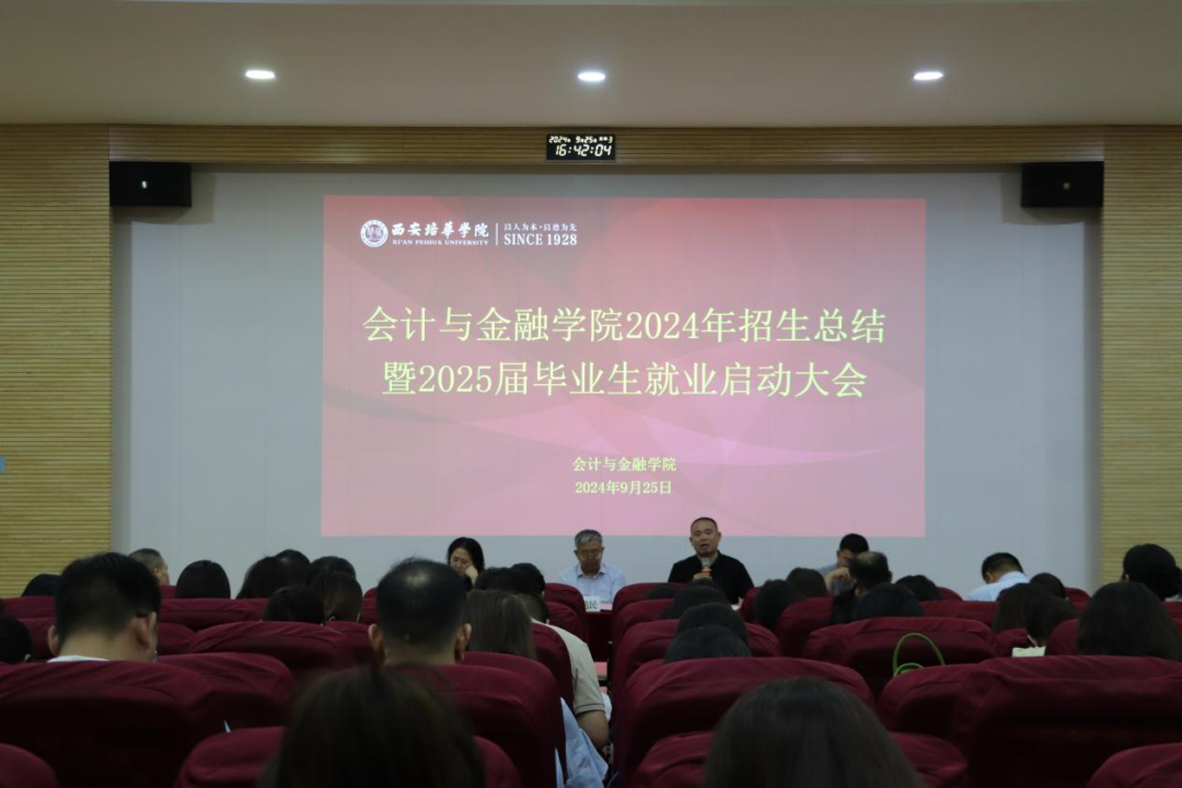 2024 年 9 月 25 日(星期三)下午 16:10,会计与金融学院 2024 年招生工作总结暨 2025 届毕业生就业启动大会在J201教室隆重举行。会计与金融学院院长赵选民、党委书记兼行政副院长刘斌、教学副院长孟君、党委副书记高乐以及全体教职工共同参与,本次会议由党委书记兼行政副院长刘斌主持。