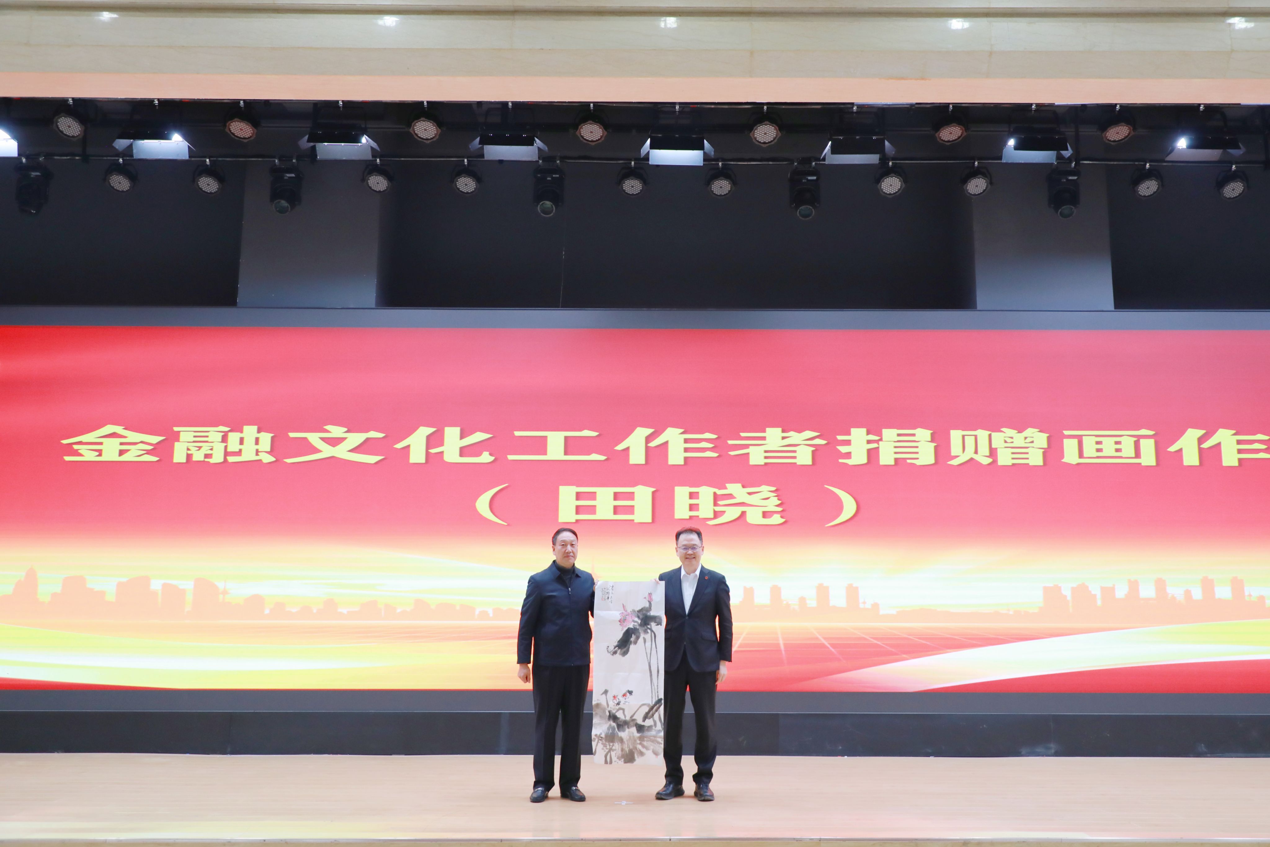 中国银行中银金融商务有限公司原董事长、陕西金融书画协会副主席田晓捐赠画作,金融作家协会主席阎雪君捐赠了书籍。