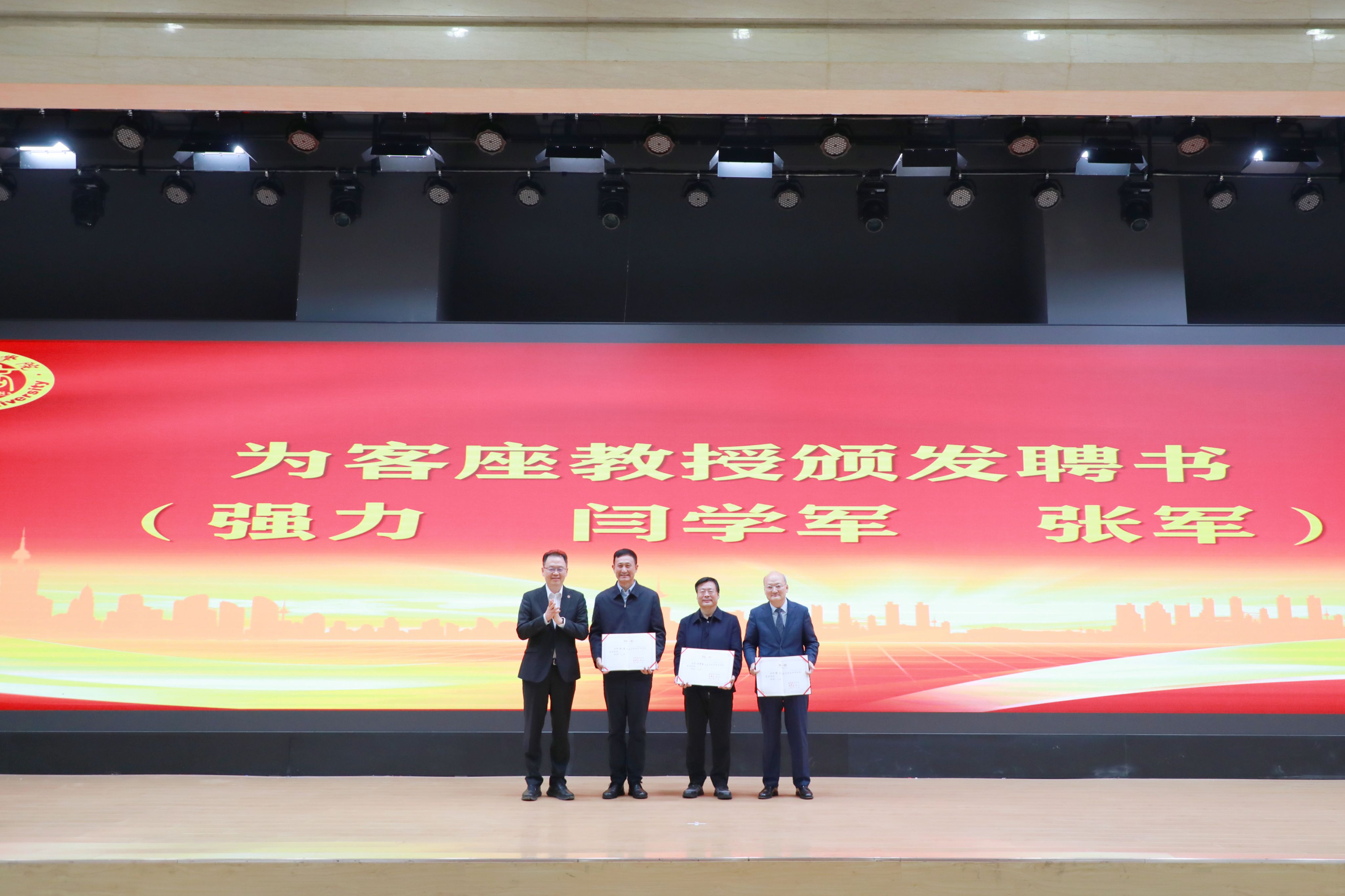 会上,姜波理事长为新聘客座教授阎雪君、强力、张军颁发了聘书;
