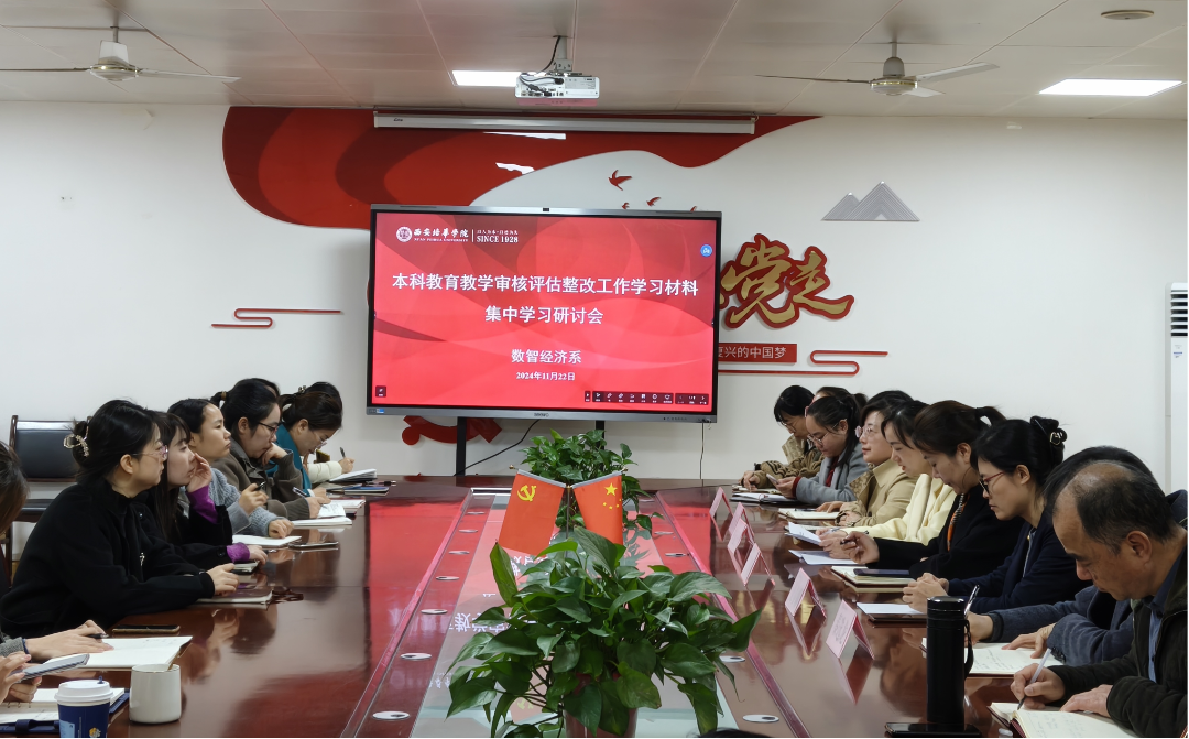 为了迎接本科教育教学审核评估回头望,确保各项准备工作的顺利完成,数智经济系11月22日中午12:00在2115会议室举办了“本科教育教学审核评估整改工作学习材料”集中学习研讨会。会计与金融学院副院长丁阳、数智经济系主任李亚子、副主任涂玉侠以及全系教师出席了会议。