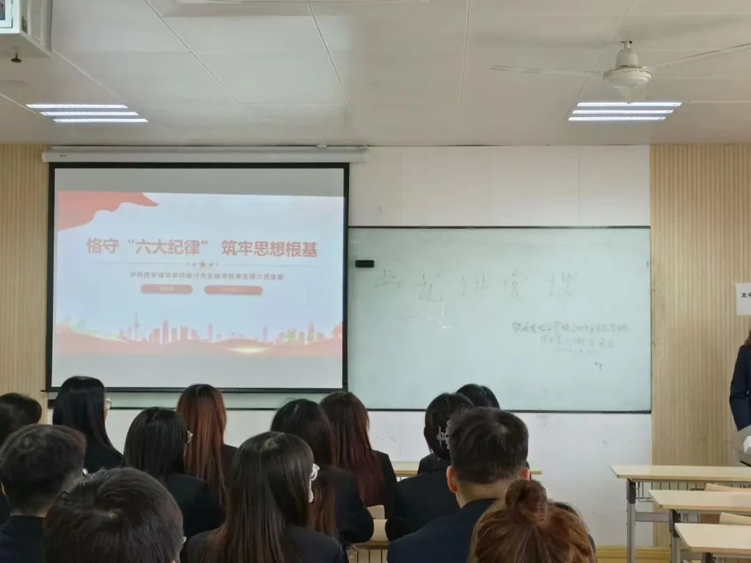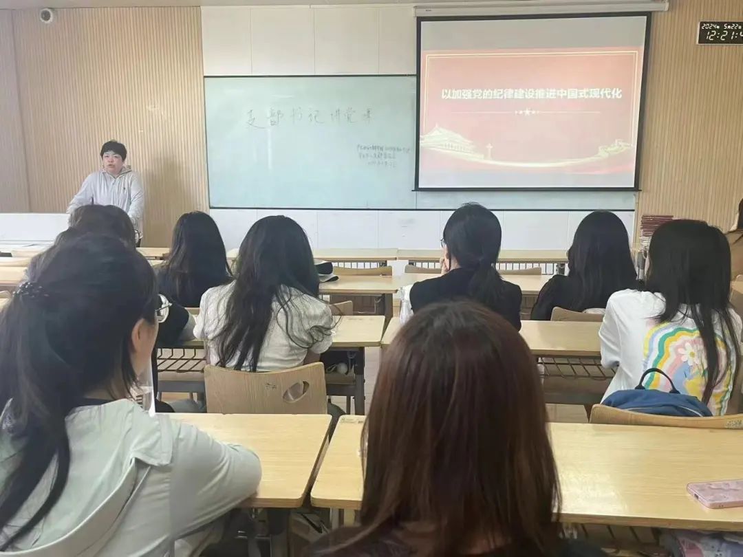 会计与金融学院学生第七党支部于2024年5月22日,在2312教室开展了以“以加强党的纪律建设推进中国式现代化”为主题的党课教育活动,支部书记赵洁老师深入阐述了党的纪律建设在推进国家现代化进程中的重要作用,并强调了每一位党员在遵守纪律、维护党的形象方面的责任。并指出,党的纪律是党的生命线,是实现中国式现代化的重要保障。她鼓励党员们要深刻理解党的纪律要求,将其内化于心、外化于行,以实际行动推动社会主义现代化建设。