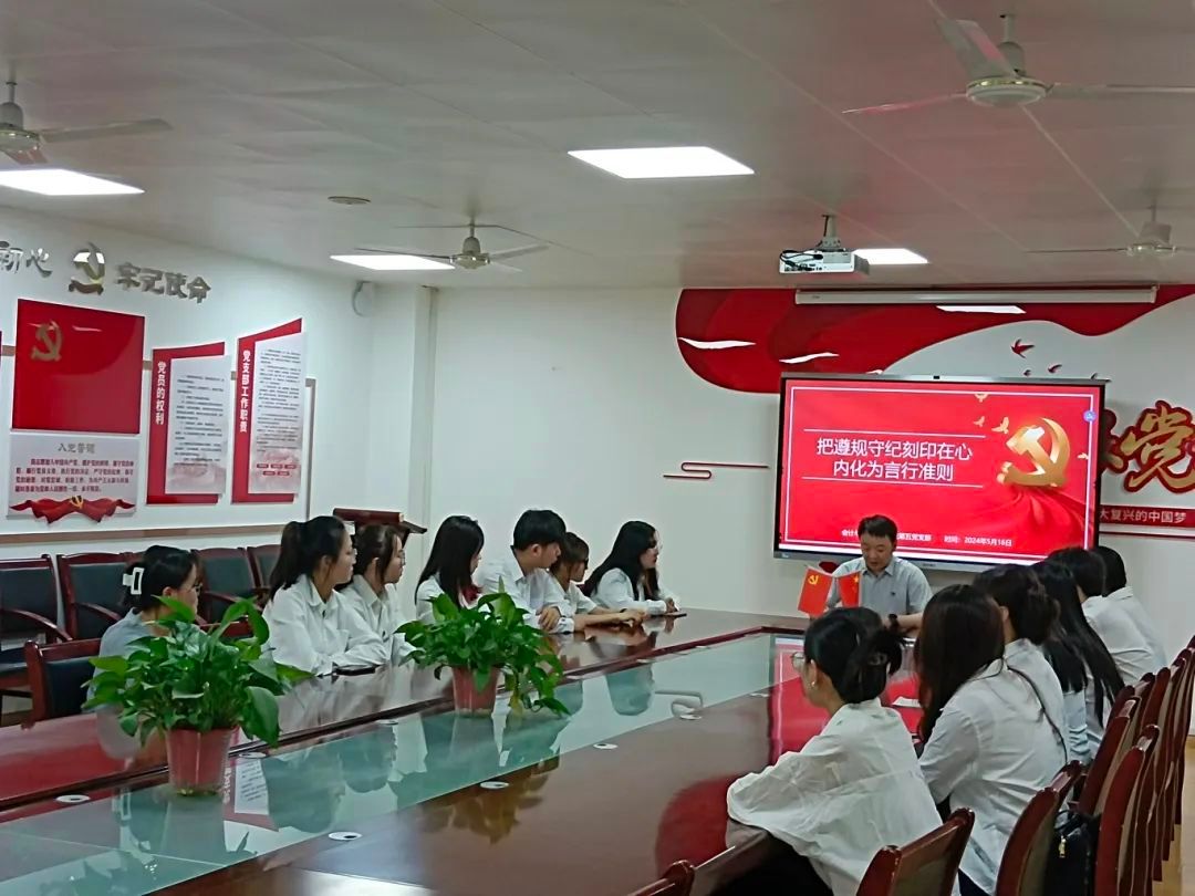 2024年5月22日,会计与金融学院学生第二党支部组织开展了主题为“坚守初心,严明党纪——新时代党员的使命与担当”讲党课活动。学生第二党支部书记杨婷婷老师强调了党纪在党的建设中的核心地位,指出党的纪律是党的生命线,是党的各级组织和全体党员必须遵守的行为准则。加强党纪教育,不仅有利于维护党的团结统一、提高党的执政能力,更是加强党员干部队伍建设的关键环节。通过加强党性修养和纪律意识,确保党员领导干部能够廉洁自律,为党和人民的事业贡献自己的力量。
