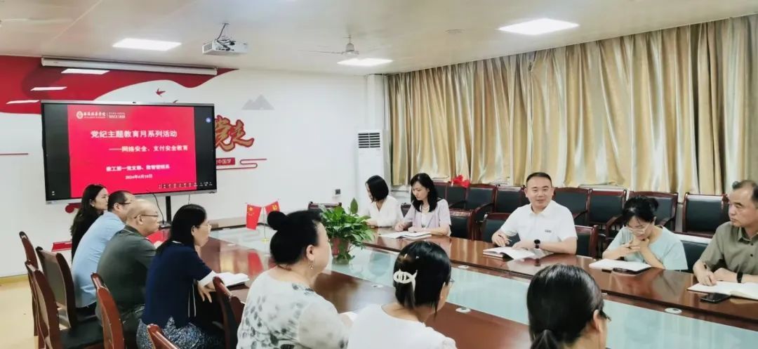近日,会金与金融学院党委强调了在日常工作中融入党纪主题教育的重要性,并特别指出应结合专业要求进行有针对性的学习。为此,6月18日周二下午16:00,在学院党委的指导下,教工第一党支部与数智营销系全体党员联合组织了一场网络安全教育学习会议。此次会议旨在加深党员们对网络安全及电子支付安全相关知识的理解,并提升大家的防范意识。本次会议在2115会议室举行,由李亚子书记担任主持。出席会议的有党委书记兼行政副院长刘斌、数智营销系主任兼教工一支部书记李亚子、数智营销系副主任秦芳,以及教工一支部和数智营销系全体党员教师。