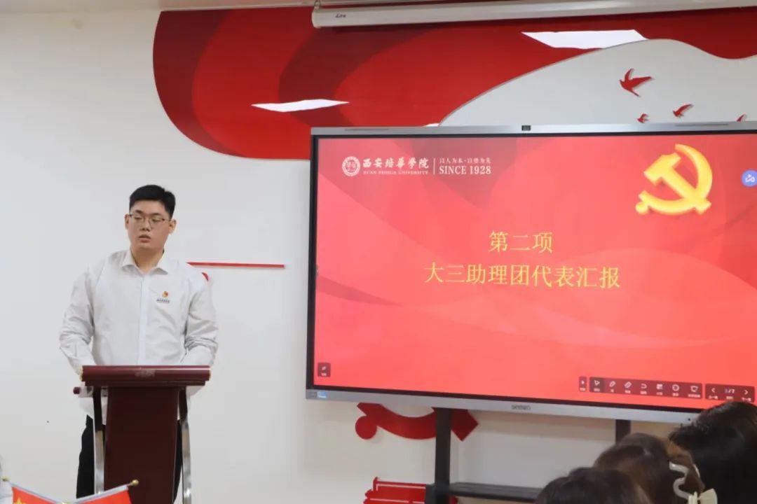 大二助理团中心组成员左金辉和助理团成员张梓怡两位同学代表发言。两位学长分别从自身党员成长经历和党性修养与践行方面进行阐述,讲述了对于如何积极追求进步,加入党组织的过程以及分享了在党组织中接受教育和培养的感悟,强调了党员身份的责任与担当,鼓励我院党员干部们积极向党组织靠拢。通过两位学长的分享,我院青年将会更加向榜样看齐,不断提升自我,一起营造一个积极向上的会金院。