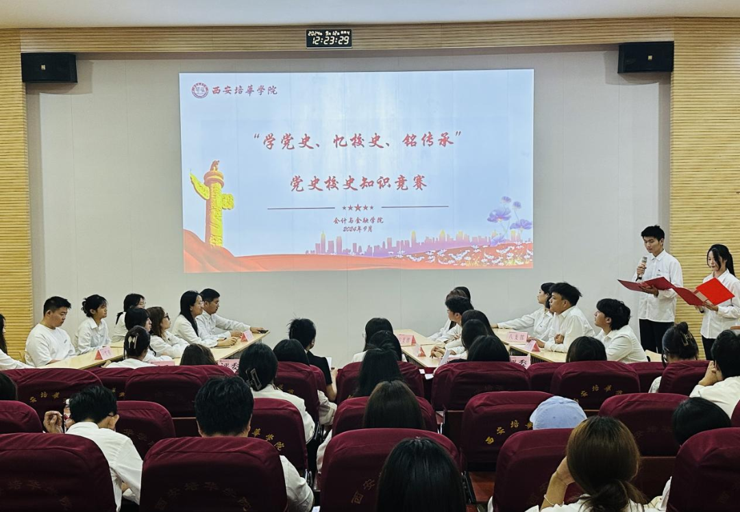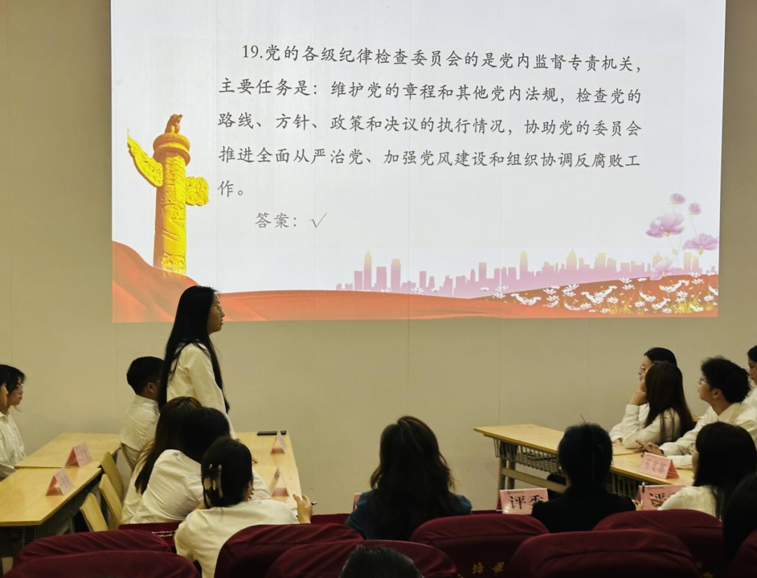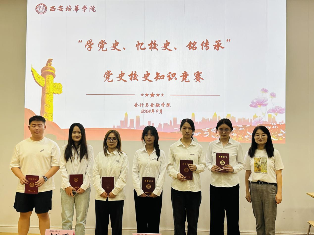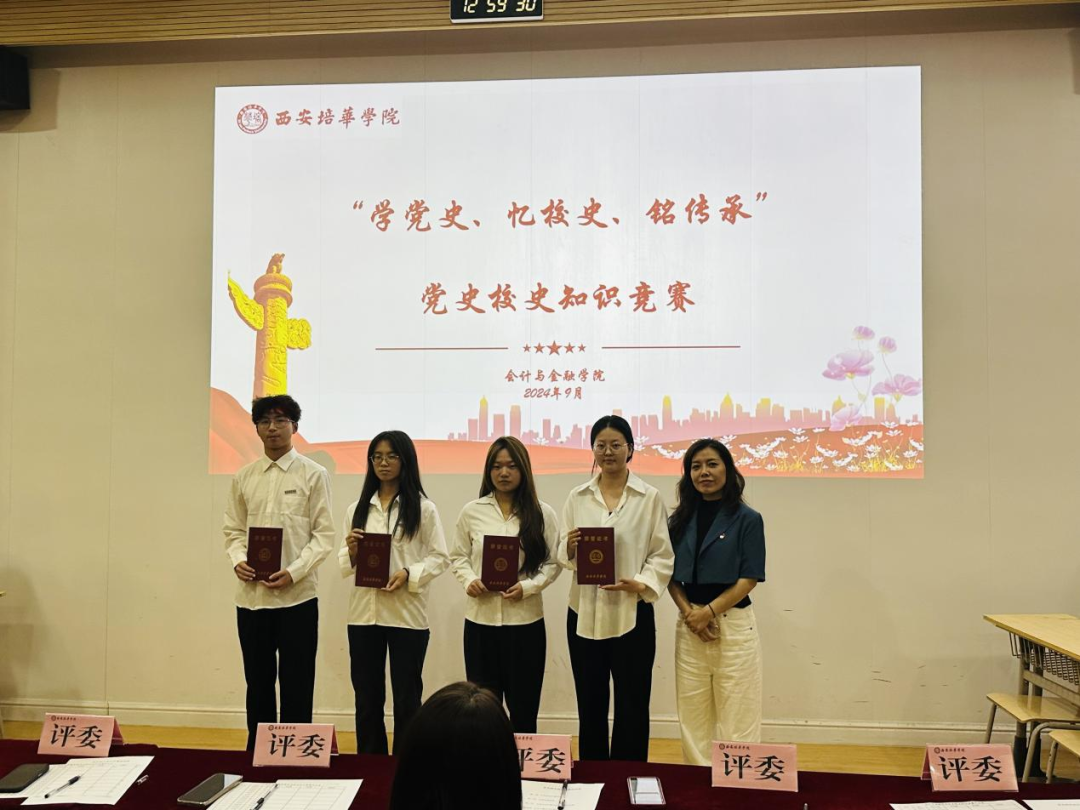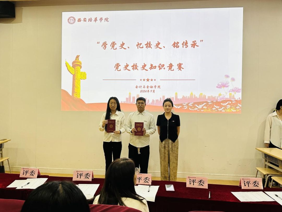 为进一步强化学生党员的党性修养,提升对党史校史的理解和掌握,西安培华学院会计与金融学院党委于9月12日12:30在博远楼J201举办了“学党史·忆校史·铭传统”党纪知识竞赛。参加本次活动的评委是党务行政干事朱梦阳、党务专干孙宝丽、学生第三党支部书记李梦丽老师及学生第六党支部书记成丽老师。