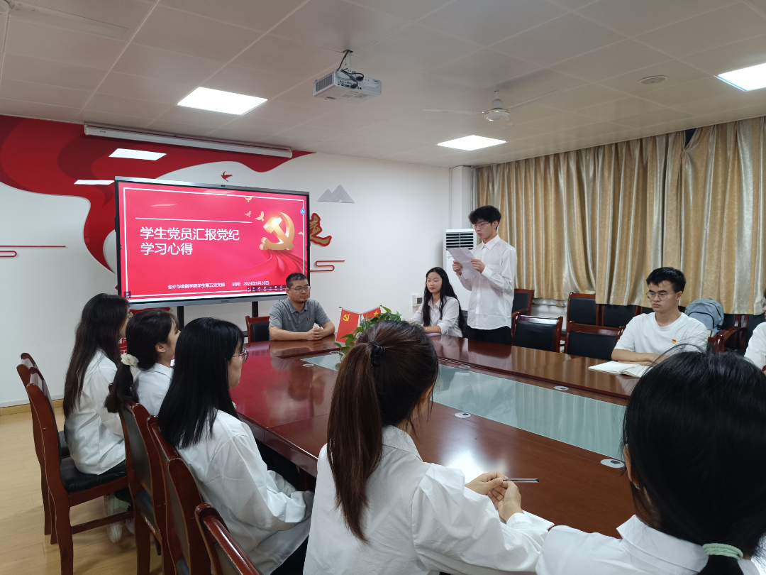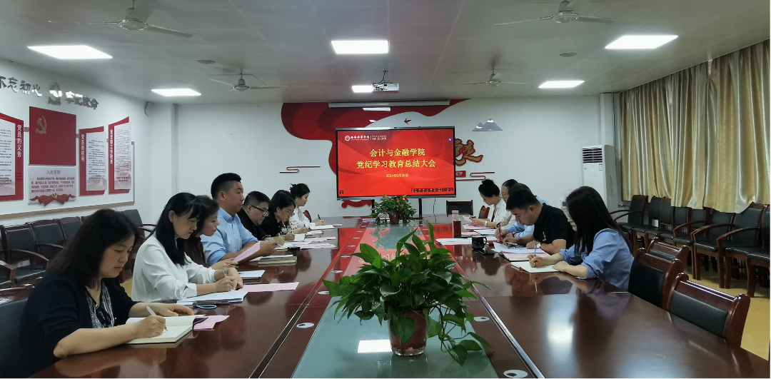 首先,学院领导班子、党委理论学习中心组成员以及各师生党支部书记在2115会议室进行会计与金融学院党纪学习教育总结大会暨党委理论学习中心组(扩大)2024年第九次会议。学院党委副书记高乐同志对学院党纪学习教育的开展情况进行了全面汇报。他详细介绍了学院在党纪学习教育中所采取的措施、取得的成效以及存在的问题,并对未来的工作方向提出了建议。
