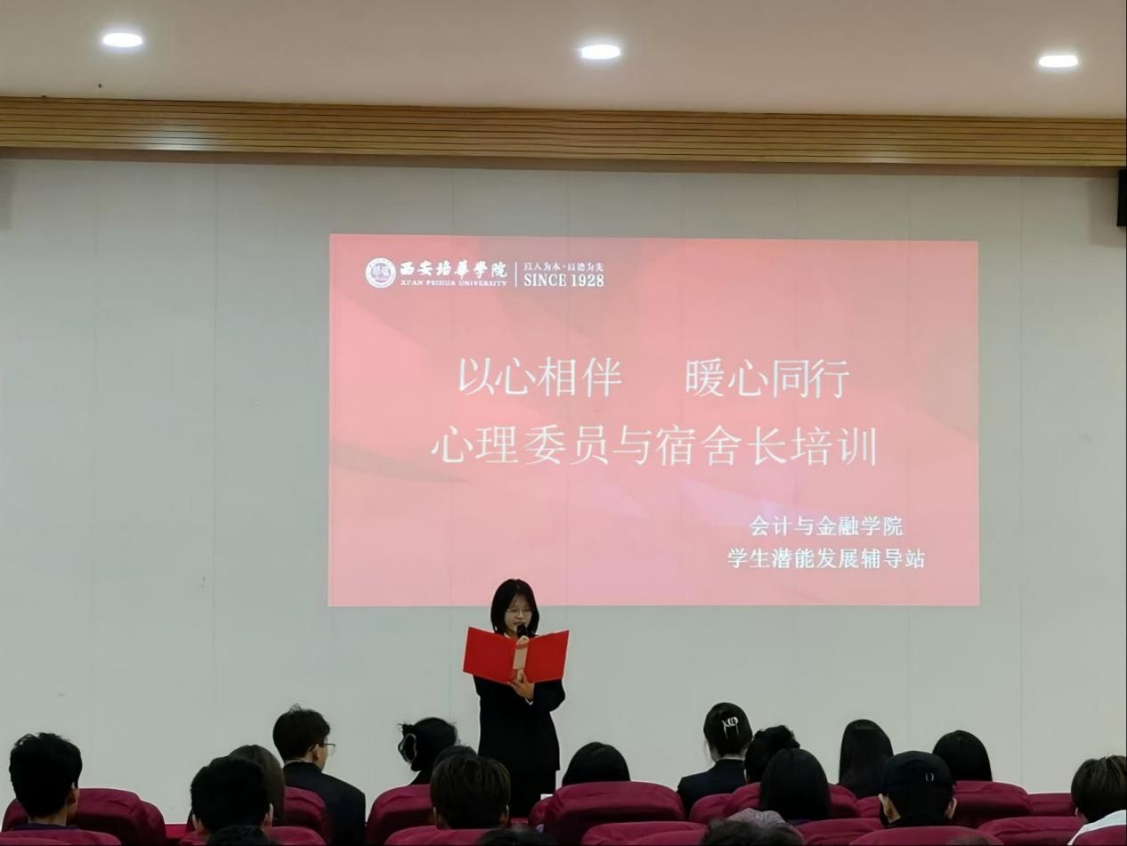 为推进寝室文化建设、规范宿舍管理,提升心理委员专业素养,筑牢校园心理防线,会计与金融学院于2025年10月21日下午6点在J201教室举办新生宿舍长及心理委员专题培训会。本次培训由学院辅导员赵娅囡老师主讲,全体新生宿舍长及心理委员参会。